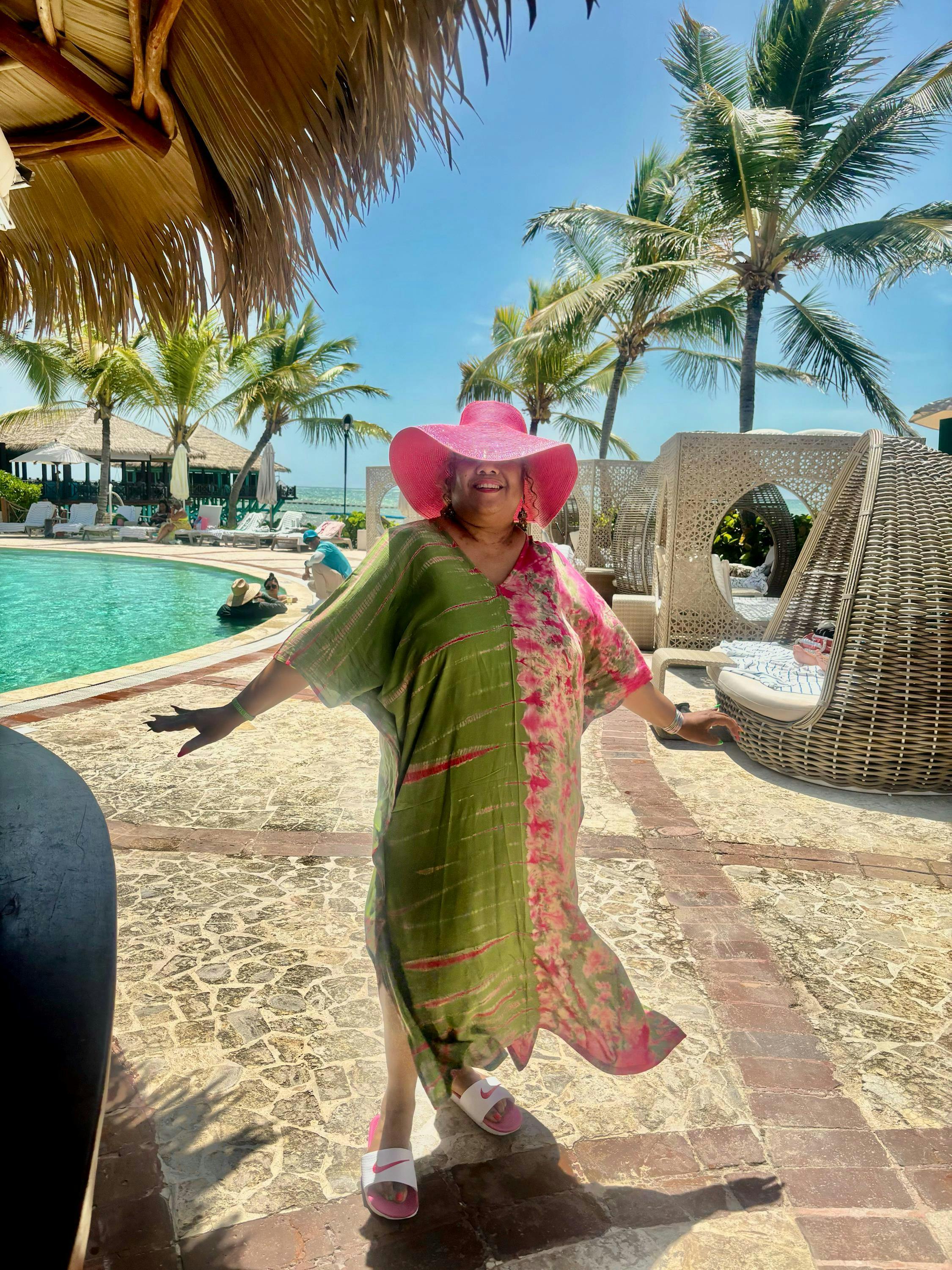MALA handworks Mala Kaftan in Olive Green and Fuchsia Tie Dye
