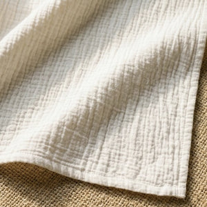 Our Cotton Kaftan Collection uses five fabric types across the range: Double Gauze (ultra-soft, two-layer weave), Cotton Gauze (light, semi-sheer, perfect for beach), Jersey Cotton (stretchy, wrinkle-resistant), Woven Cotton (structured, holds its shape), and French Terry (soft loopback interior – our coziest option). Each product listing names the fabric so you can choose what suits you best.