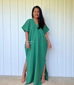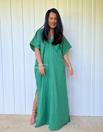 Gloria Double Gauze Cotton Kaftan in Emerald Green