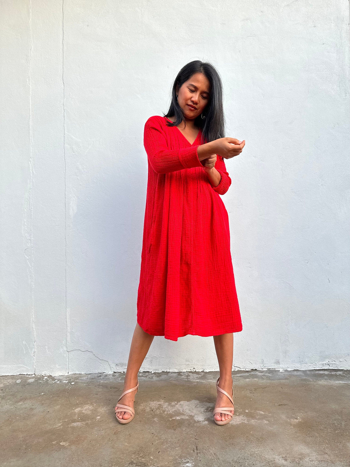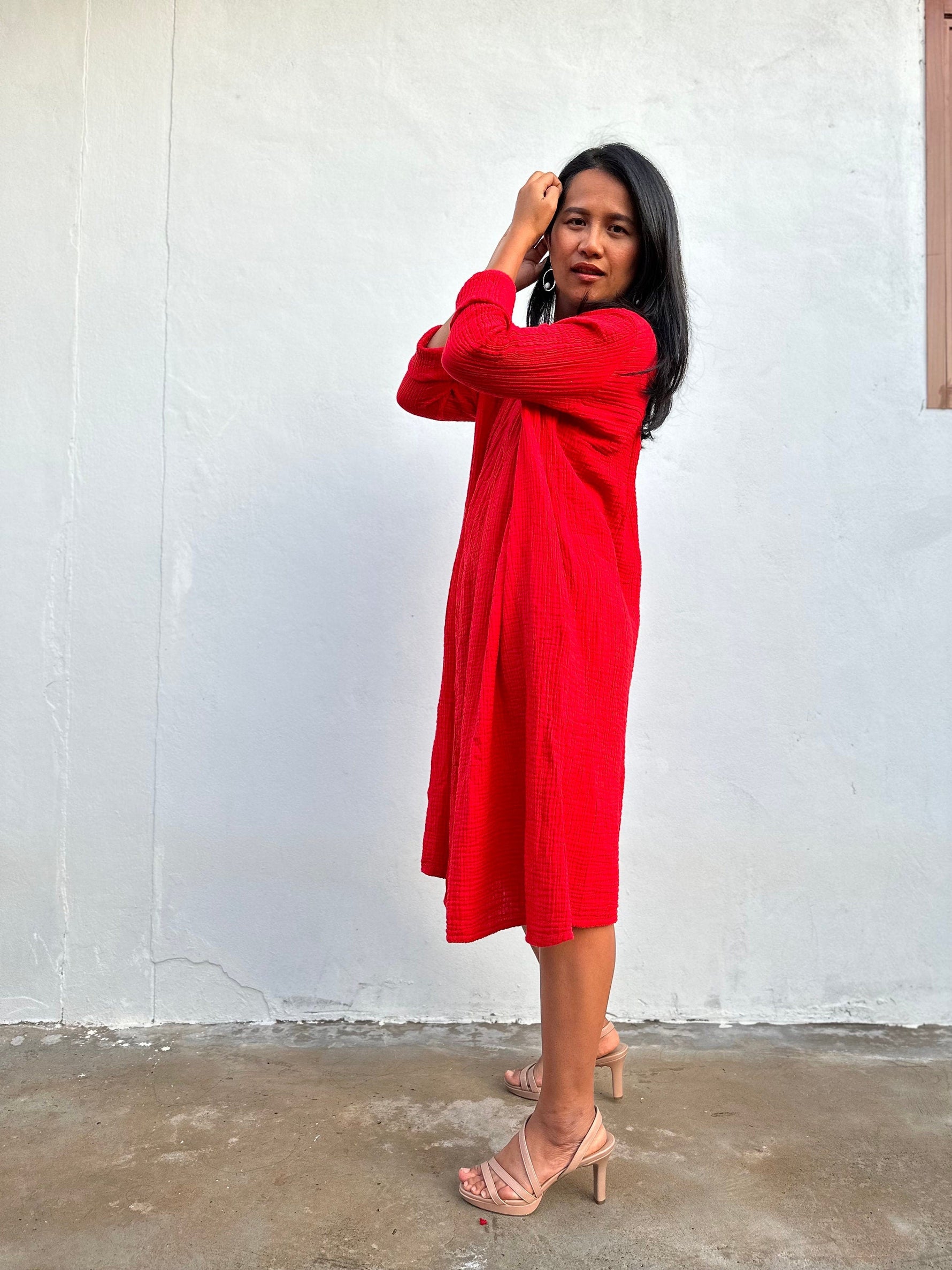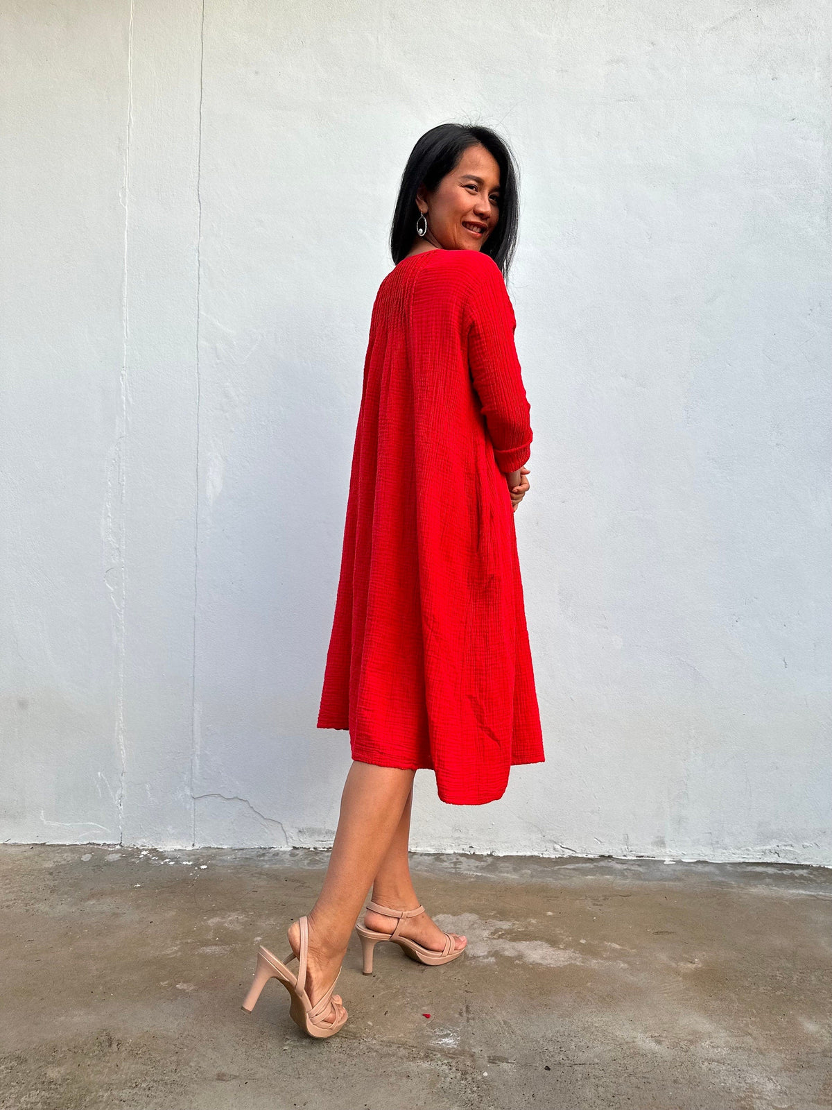 Soft, breathable, and made to move with you - meet your new favorite wardrobe staple. The Bree Everyday Gauze Dress is crafted from 100% double gauze cotton, giving it that breezy, airy feel we all love. With a relaxed silhouette, long sleeves, and functional side pockets, it’s perfect for layering or lounging all year round.