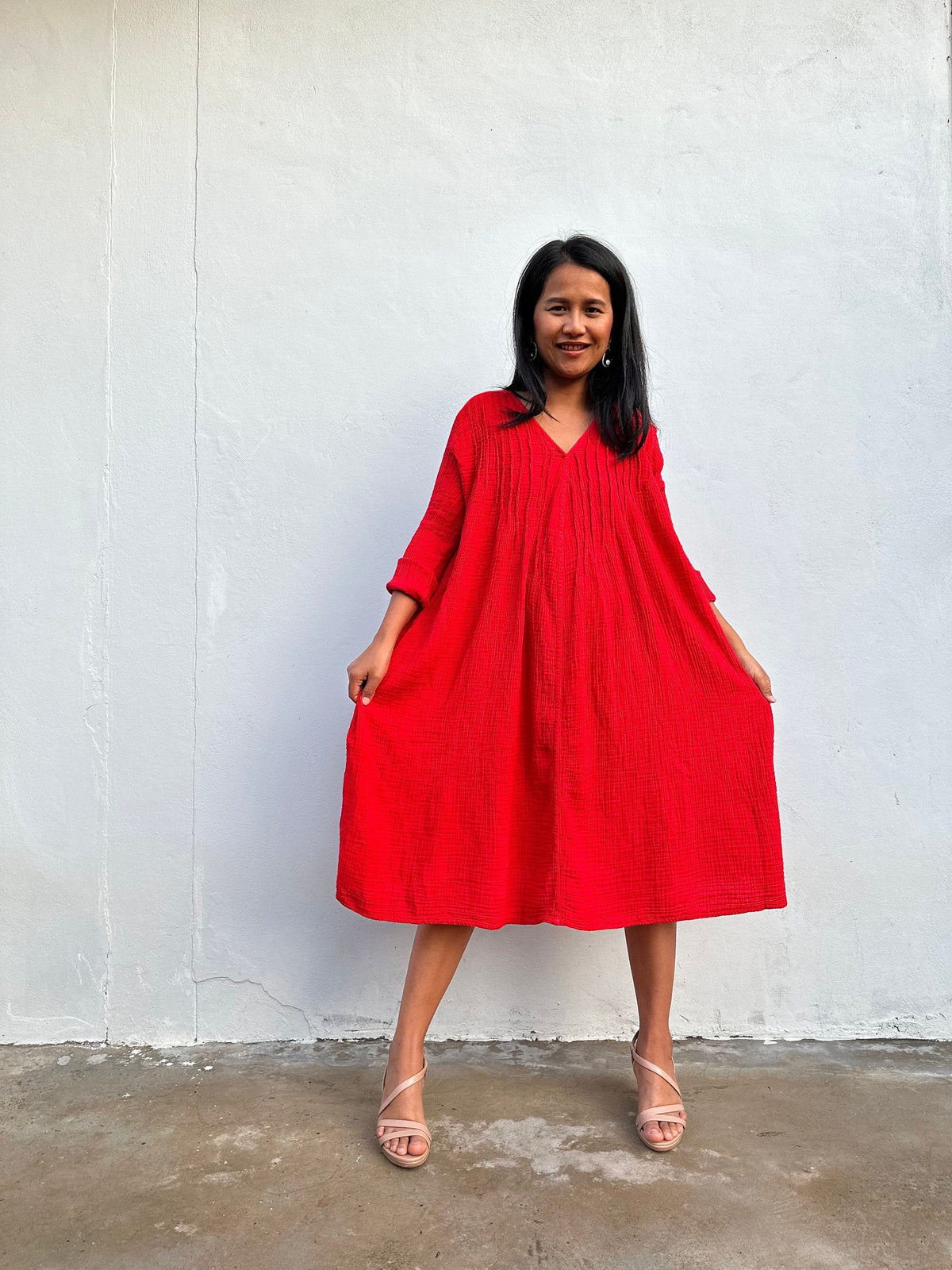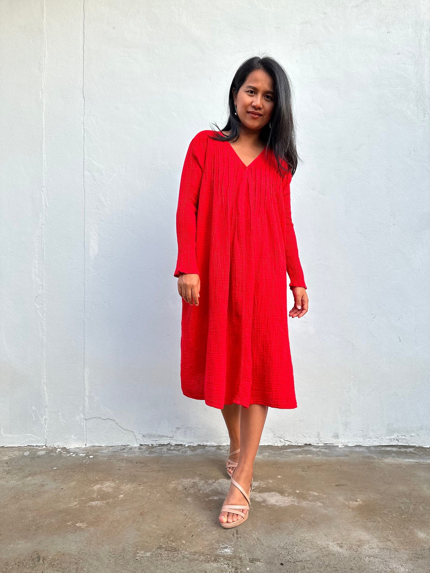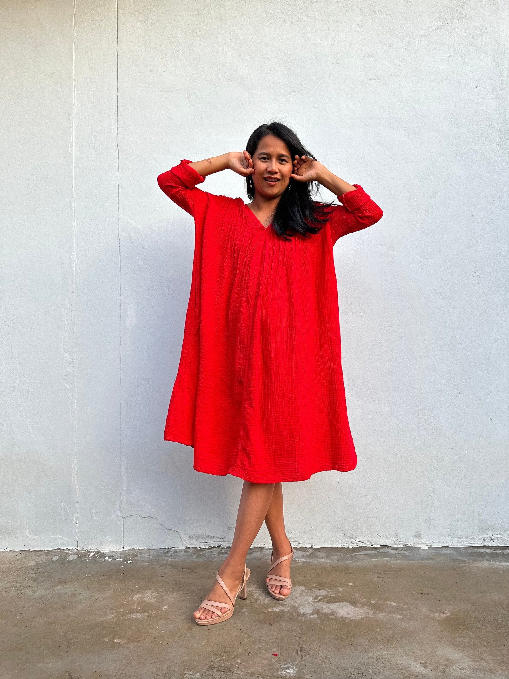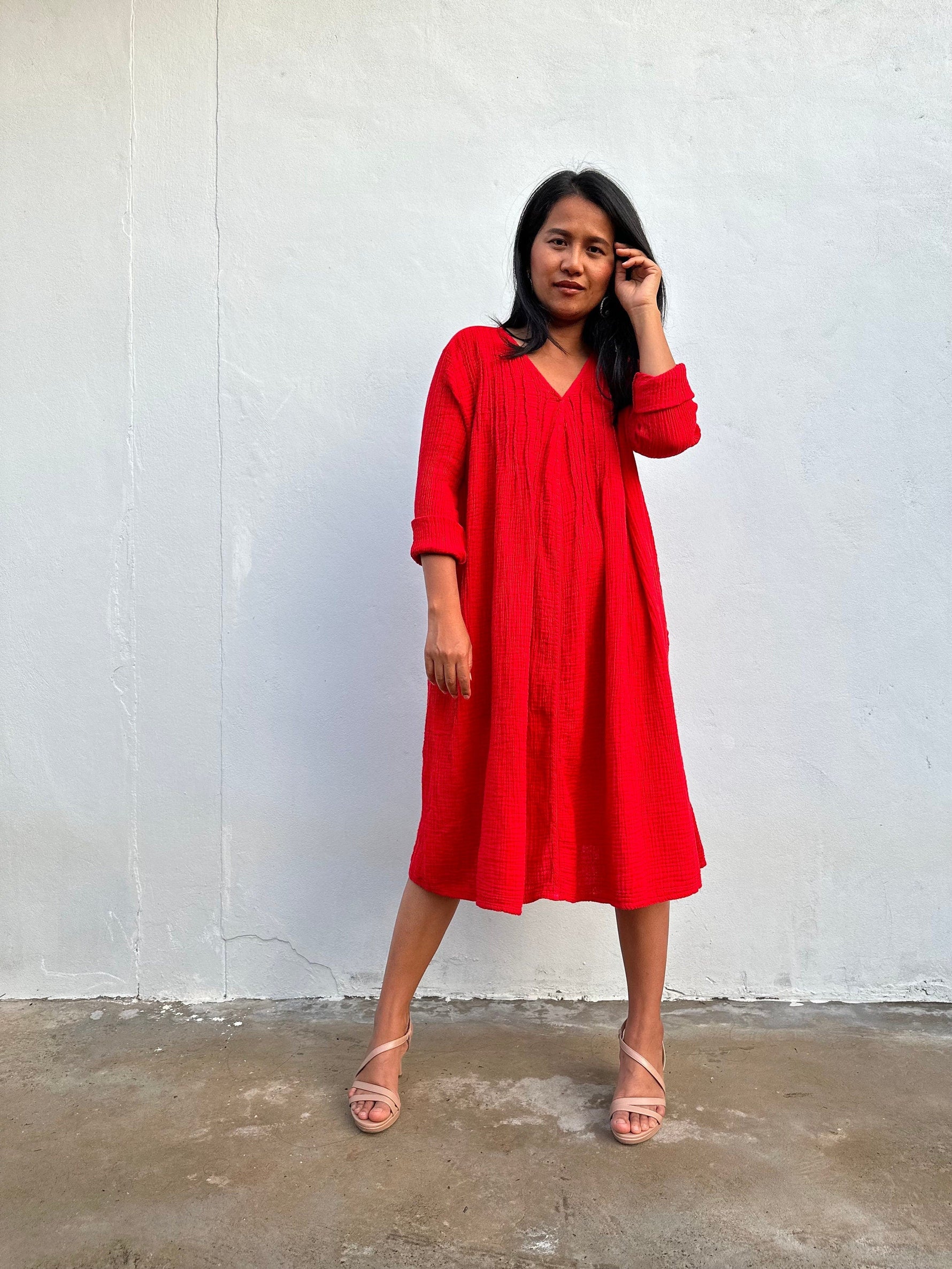 Soft, breathable, and made to move with you - meet your new favorite wardrobe staple. The Bree Everyday Gauze Dress is crafted from 100% double gauze cotton, giving it that breezy, airy feel we all love. With a relaxed silhouette, long sleeves, and functional side pockets, it’s perfect for layering or lounging all year round.