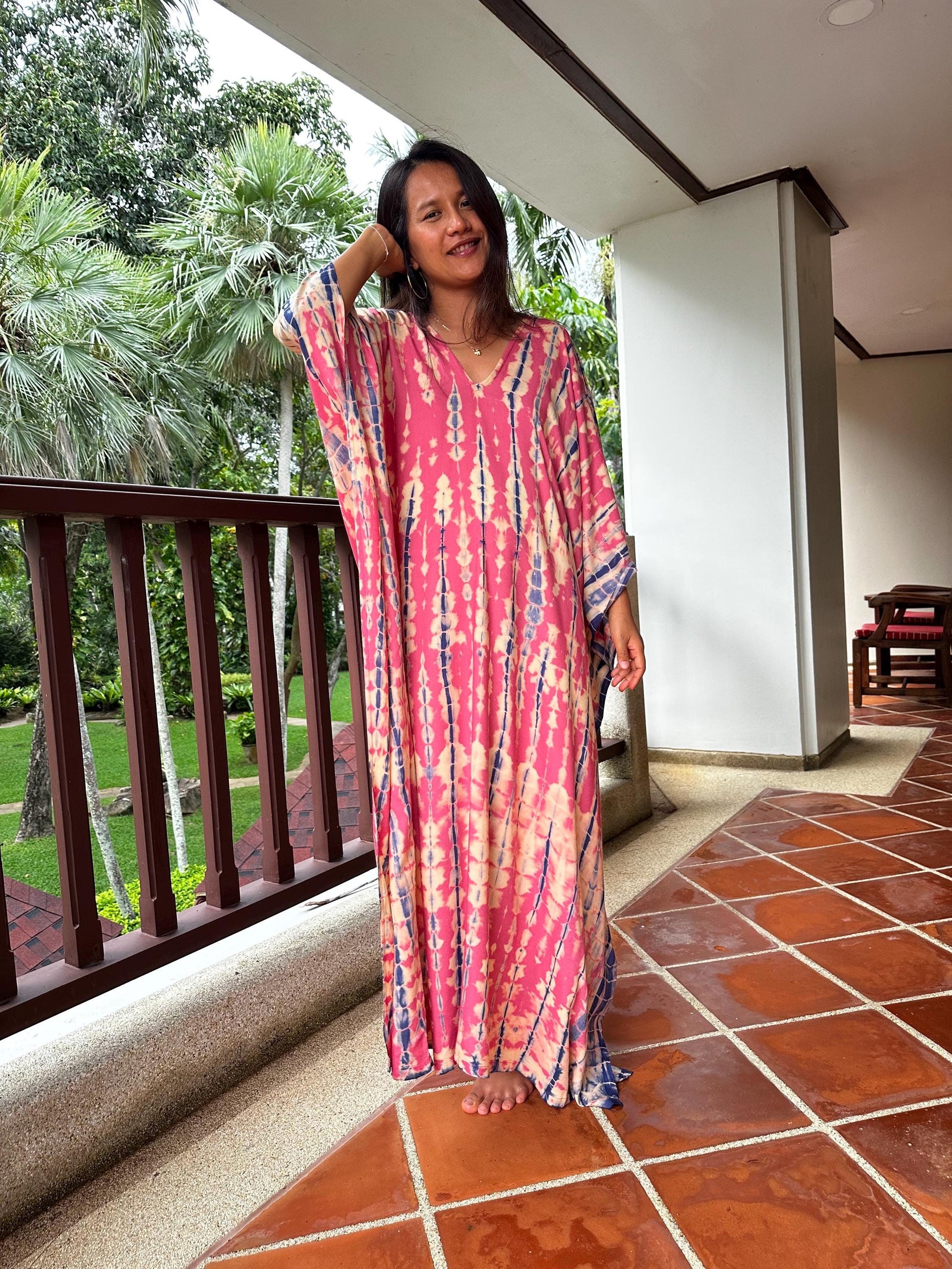 Dive into a world of vibrant color and unique patterns with our tie dye kaftan. Each piece is a masterpiece of individual hand tie-dyeing, ensuring that no two are alike. Crafted with meticulous care and attention, these kaftans offer a burst of style and creativity. Whether you're lounging at home, heading to the beach, or stepping out for an evening on the town, our tie dye kaftan is the perfect choice to make a bold and unforgettable fashion statement. Embrace the artistry and individuality of tie-dye with every wear.