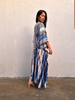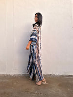 Amina Hand-Painted Kaftan - Blueberry Blue and Black Striped Pattern