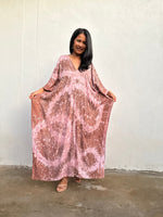 Amina Hand-Painted Kaftan - Peach Abstract Pattern