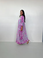 Olivia Cotton Kaftan in Aqua and Fuchsia Tie Dye