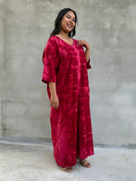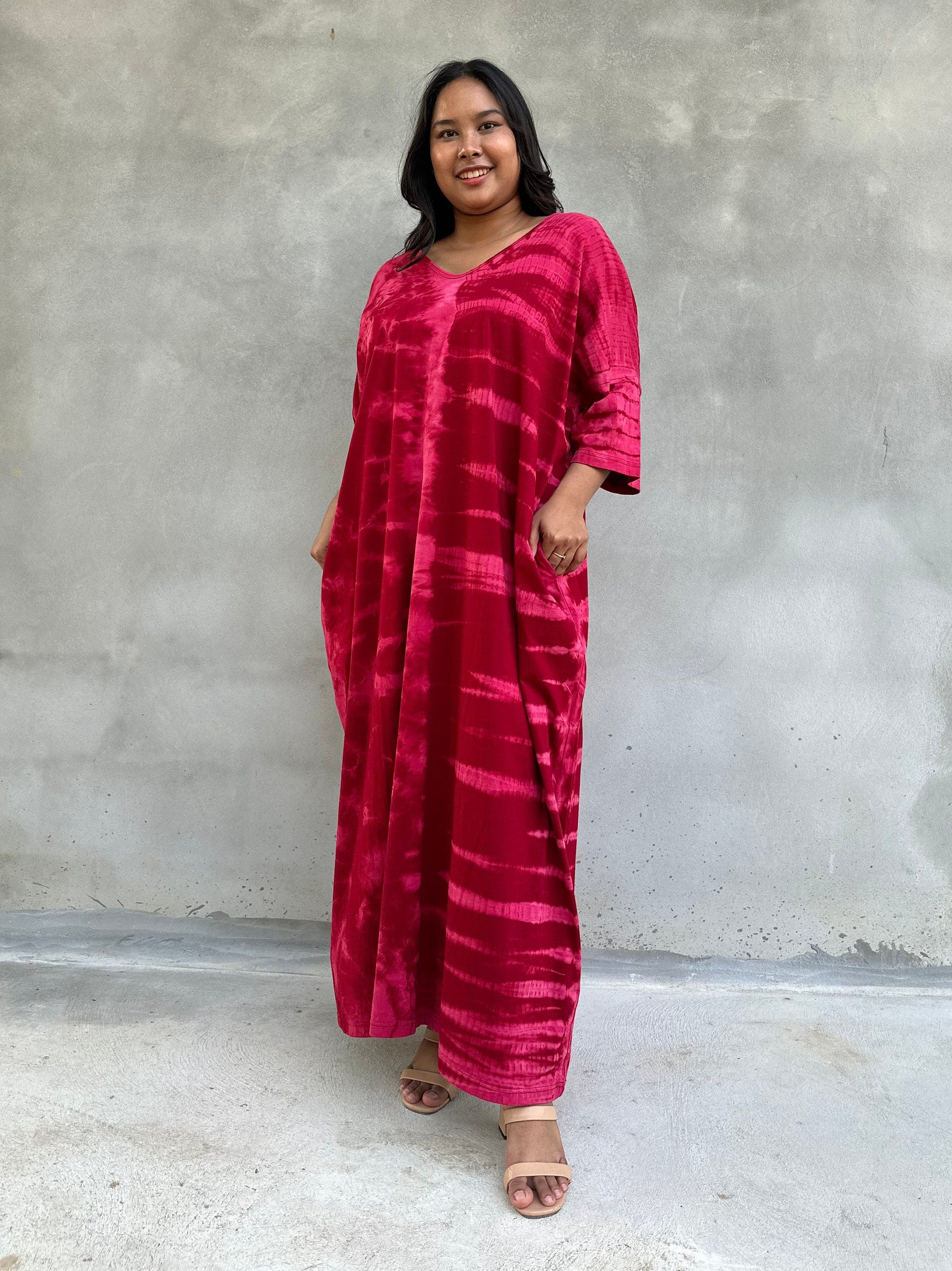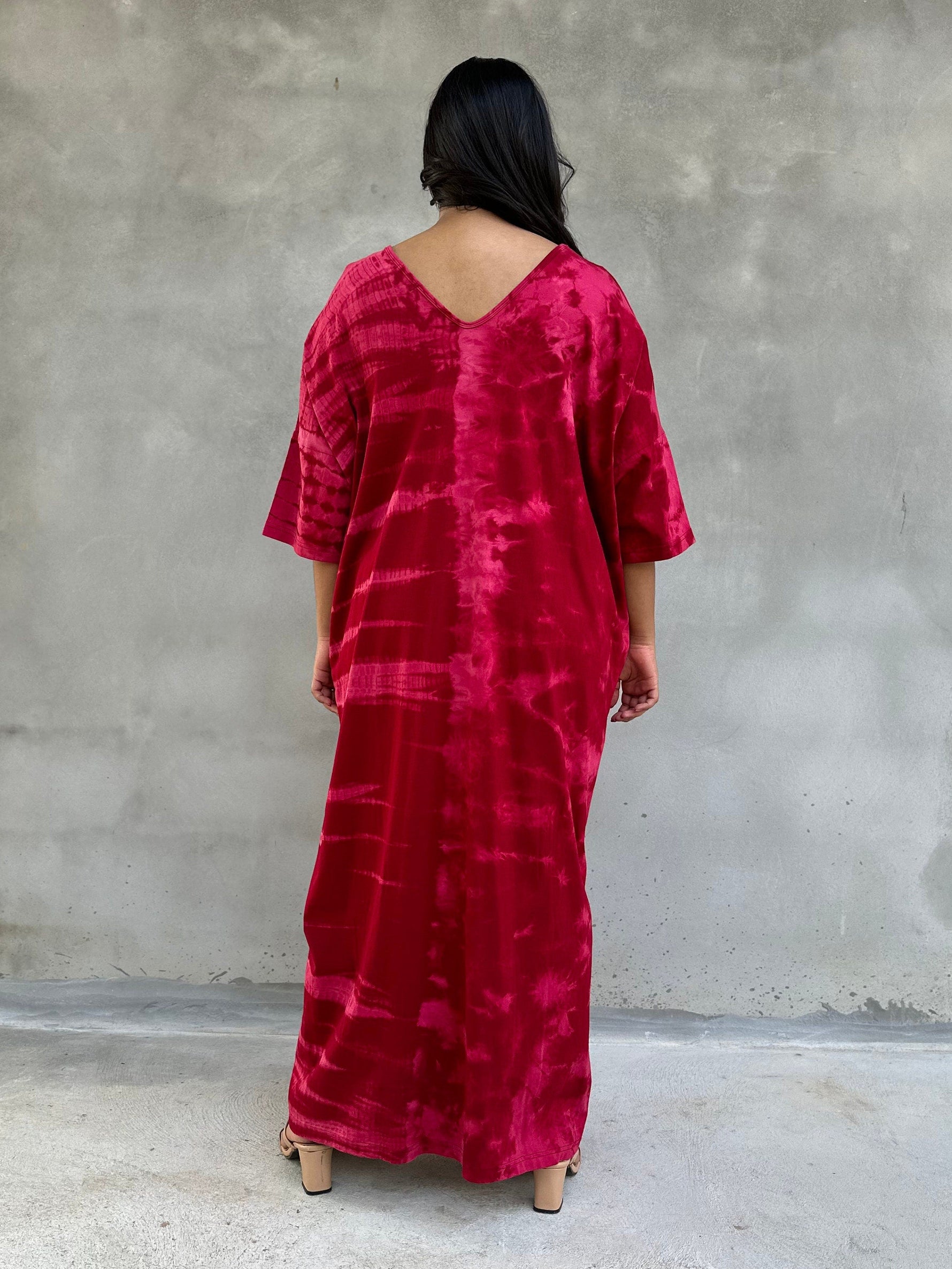 Color, comfort, and character – the Olivia Tie-Dye brings all three. Crafted from ultra-soft jersey cotton, it drapes smoothly for all-day ease, while the cherry adds vibrant personality. Each tie-dye piece is uniquely hand tied and dyed patterned, so yours won’t look like anyone else’s. Style as a statement beach cover-up, toss on with slides for the market, or dress it up with strappy sandals and earrings for evening. The relaxed silhouette keeps things breathable and unfussy, letting the print do the talking. Available in 51 inch length.