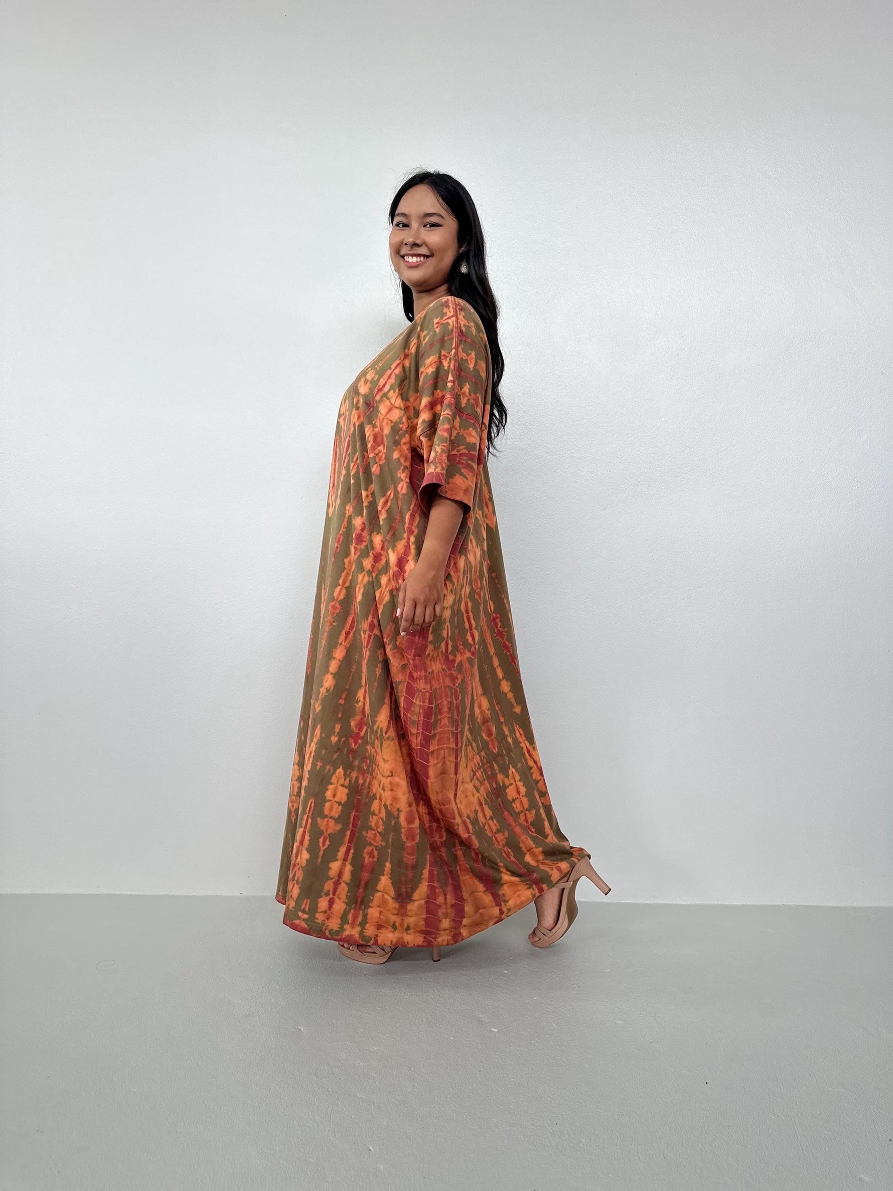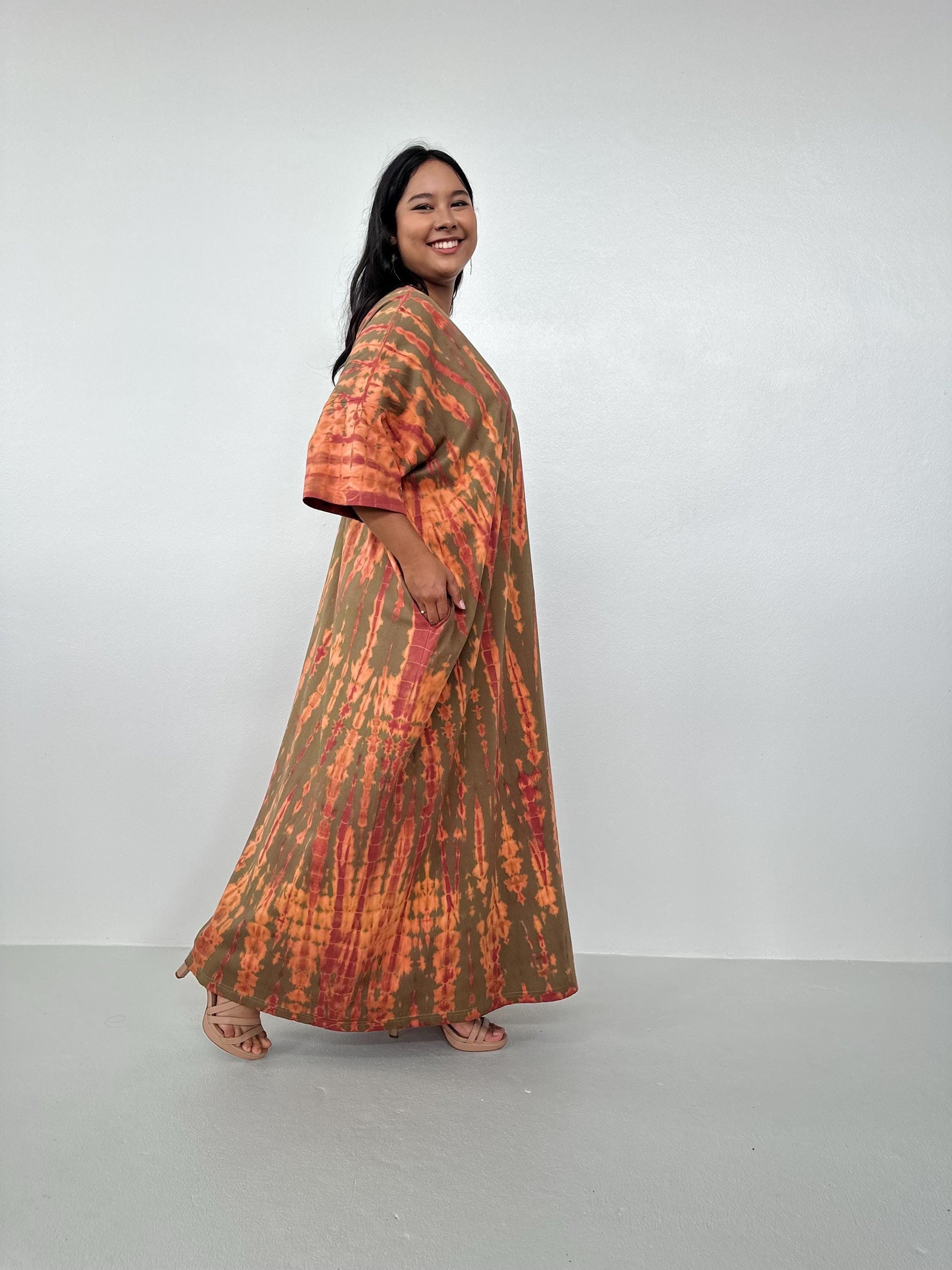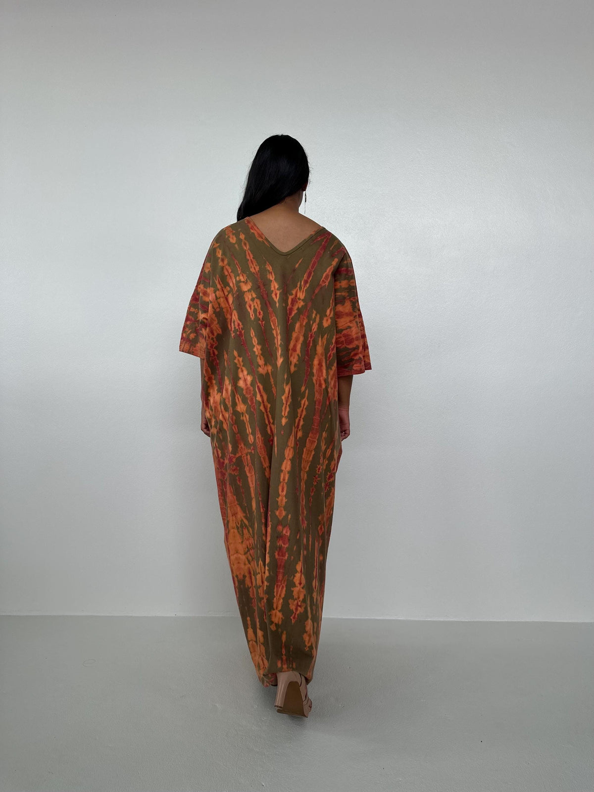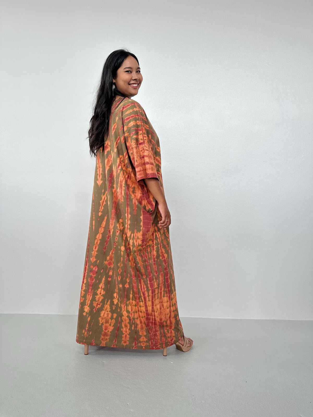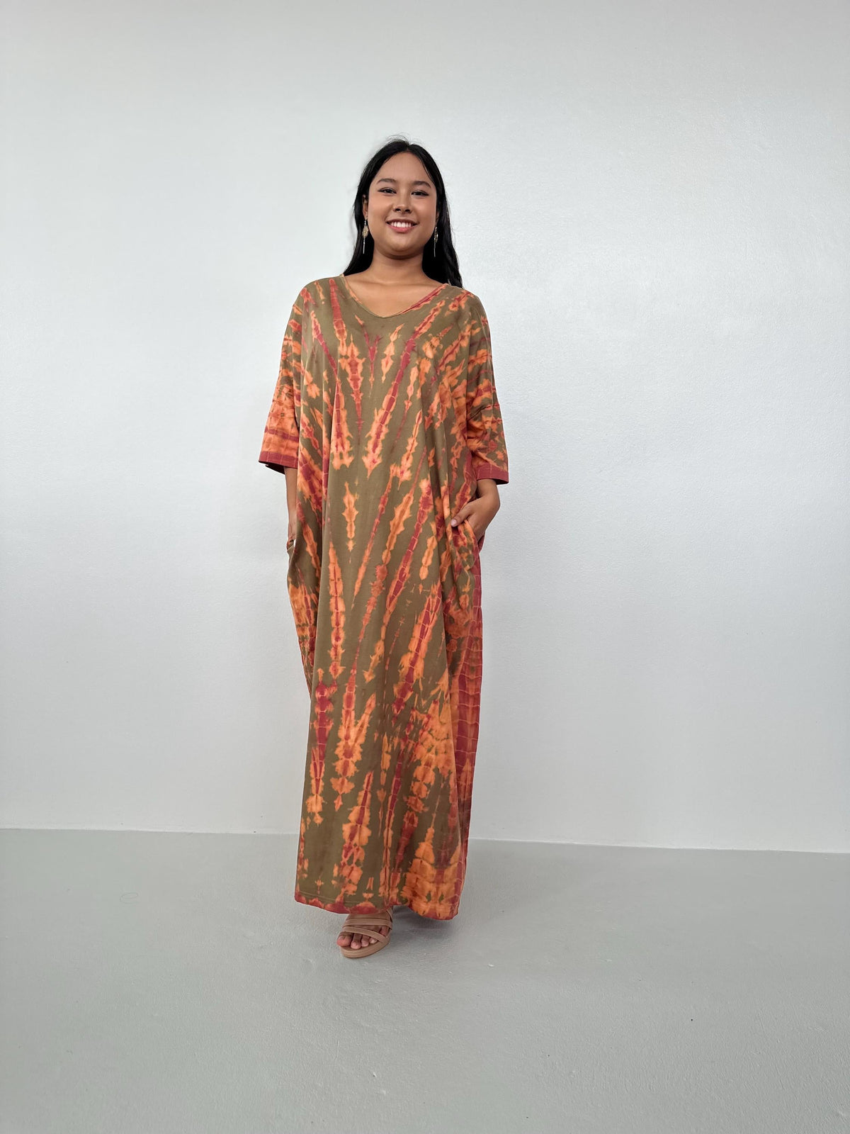 Olivia Cotton Kaftan in Olive and Bronze Tie Dye