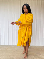 Aura Midi Double Gauze Cotton Shirt Dress in Yellow Turmeric