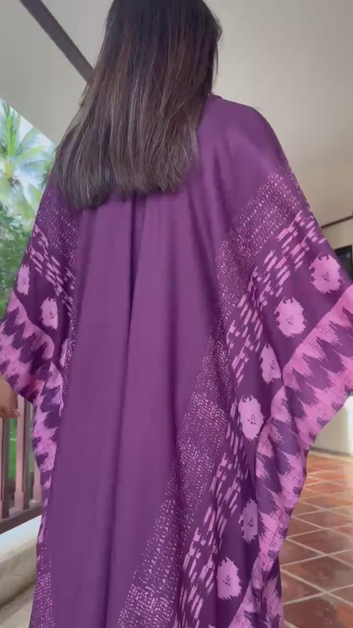 Luna Hand Screen Printed Kaftan in Eggplant