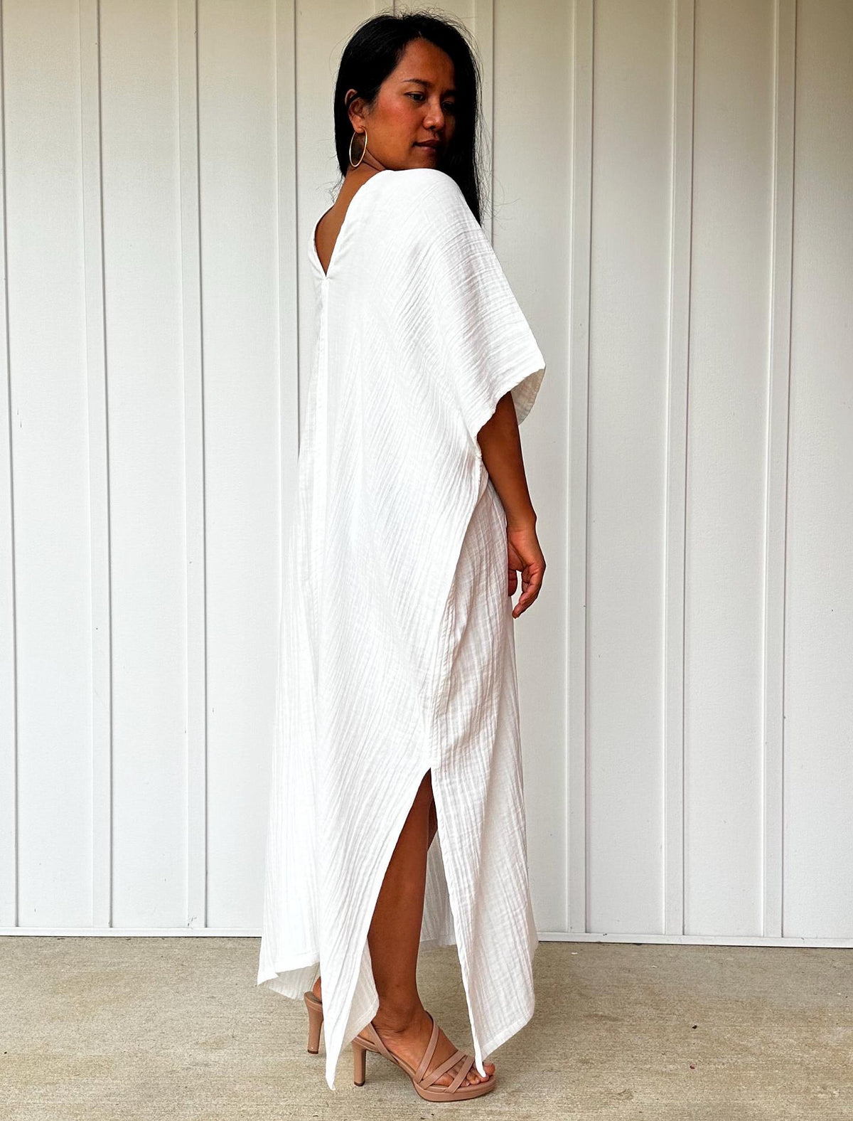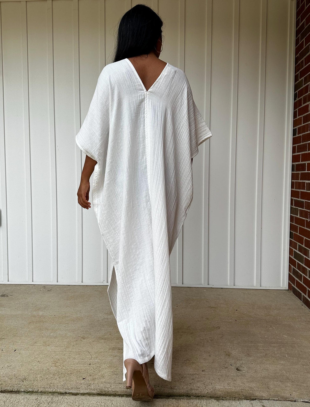 Grace Double Gauze Cotton Kaftan in Off White