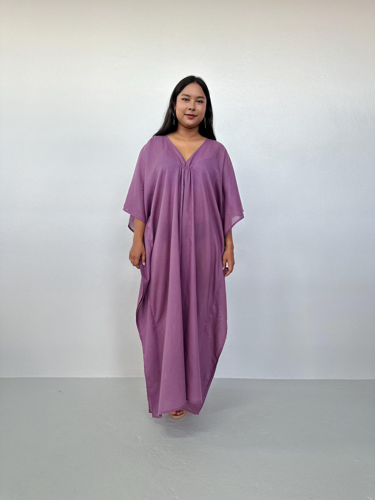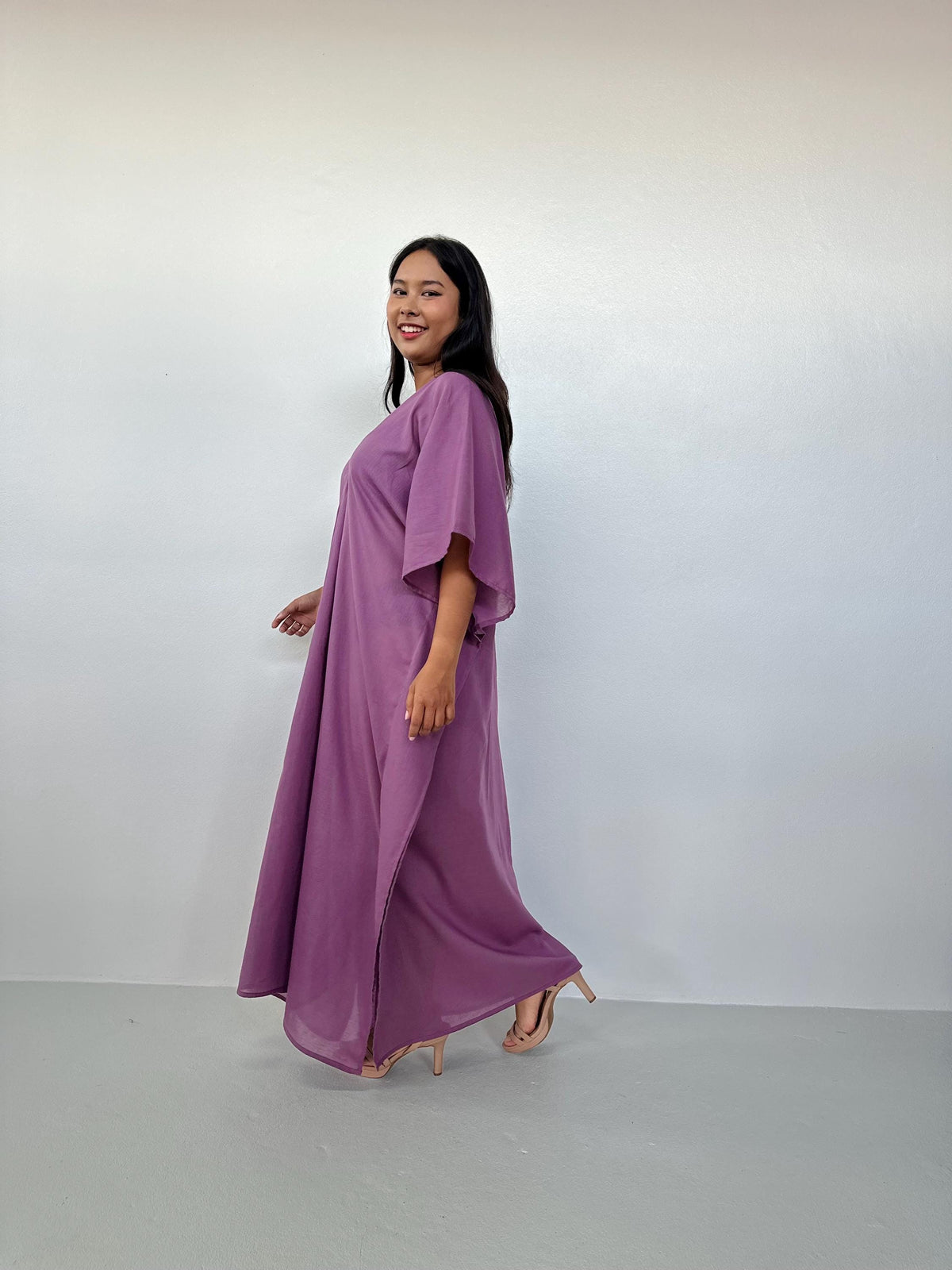 The Lyla in plum cotton gauze is made for the kind of day that starts at the beach and ends at the table. Gossamer-light and naturally breathable, the cotton gauze floats rather than drapes — catching the breeze, moving with you, never getting in the way. The deep plum is rich enough to feel intentional even in its most effortless form.