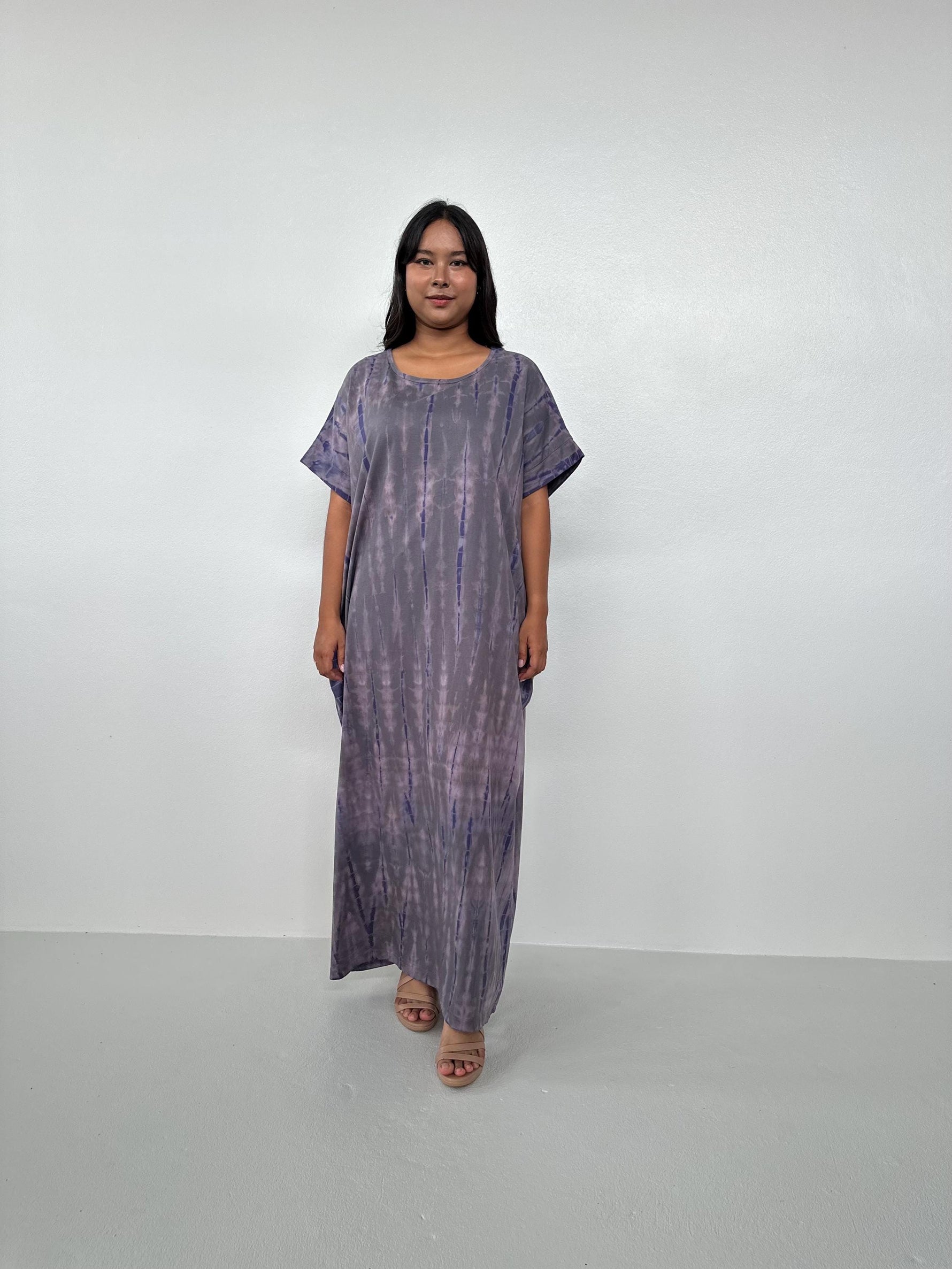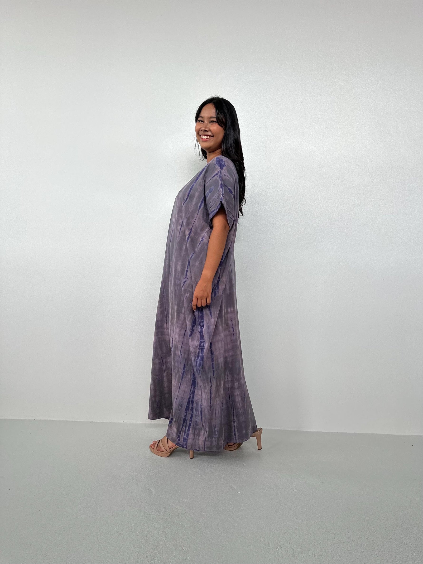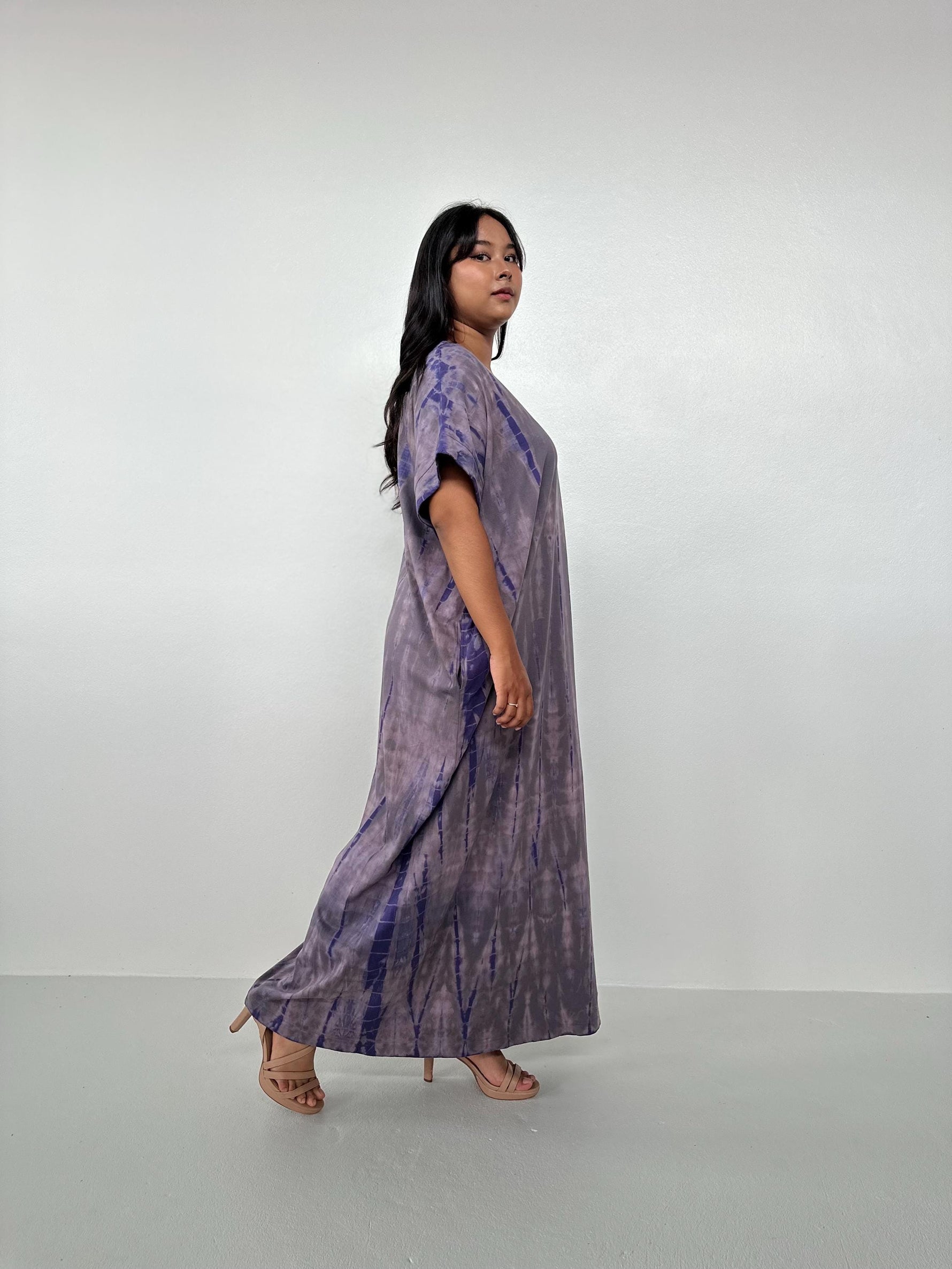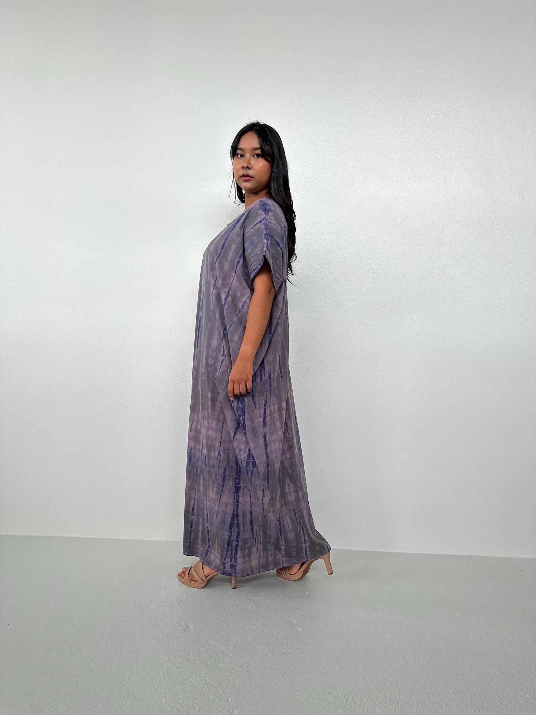 Alice Jersey Cotton Kaftan in Deep Purple Tie Dye
