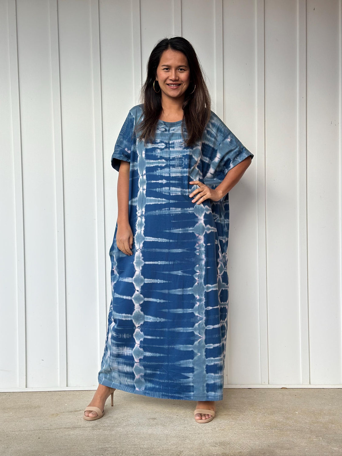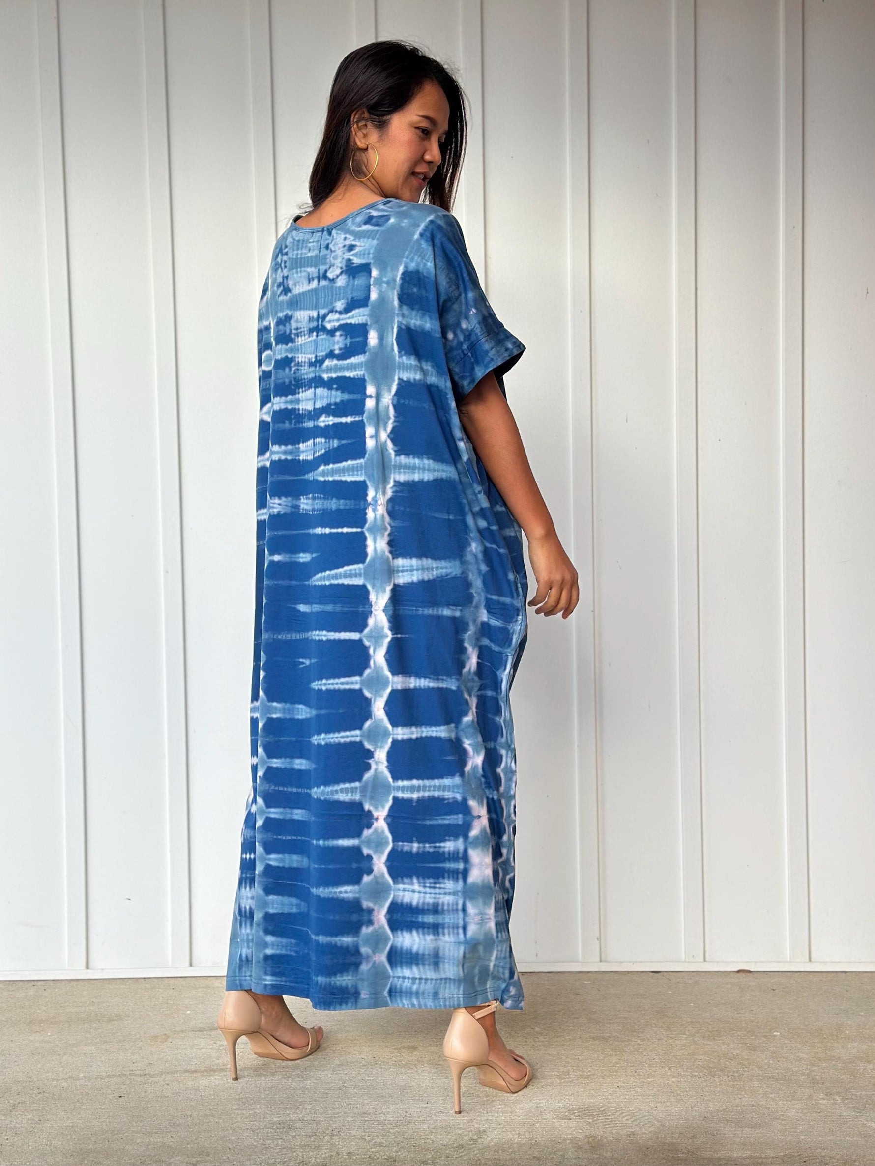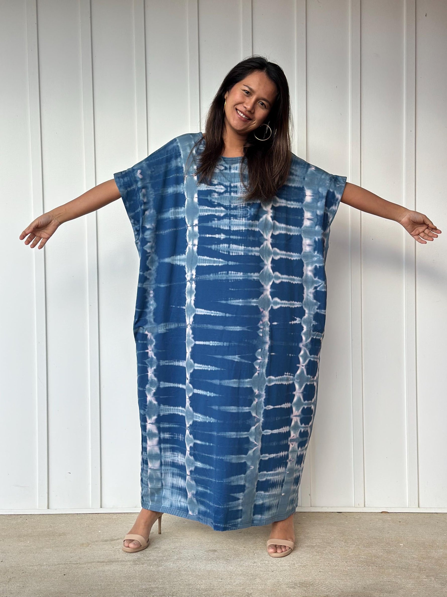 Alice Jersey Cotton Kaftan in Blue and White Tie Dye