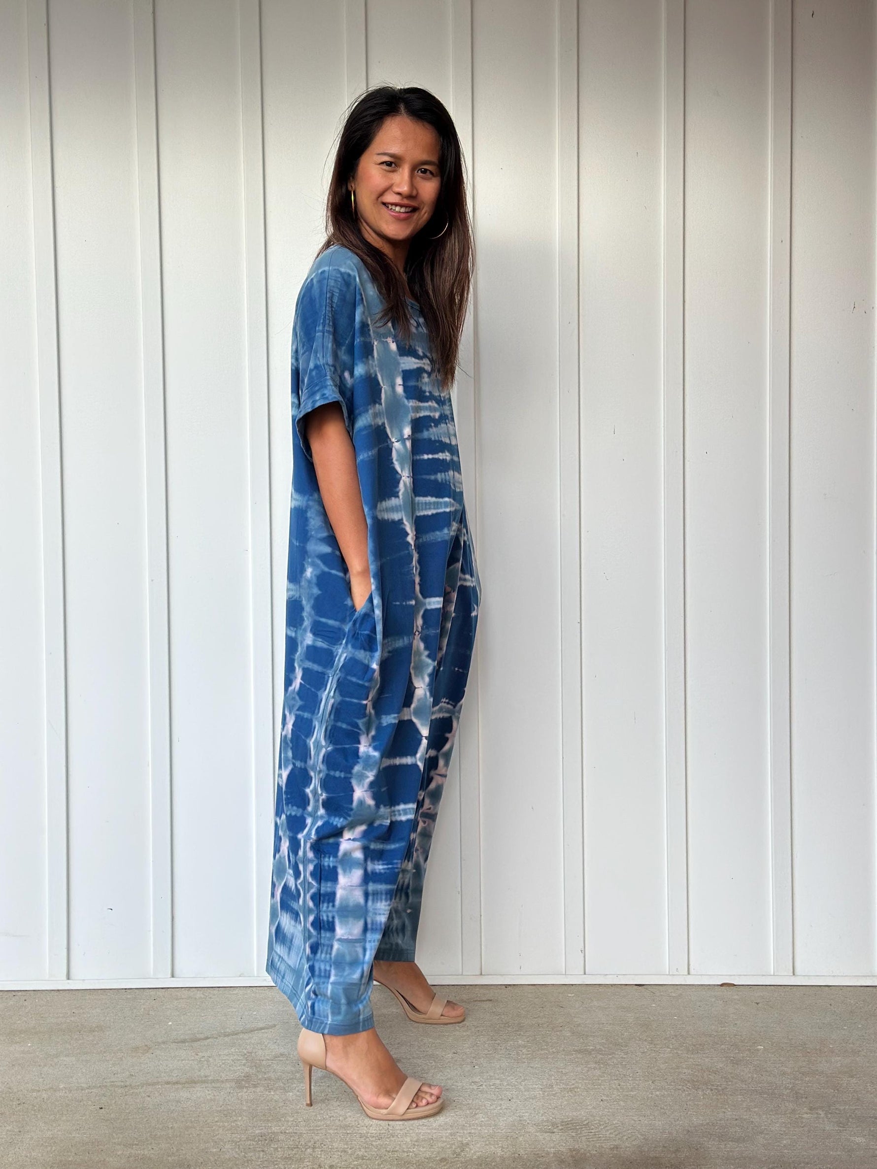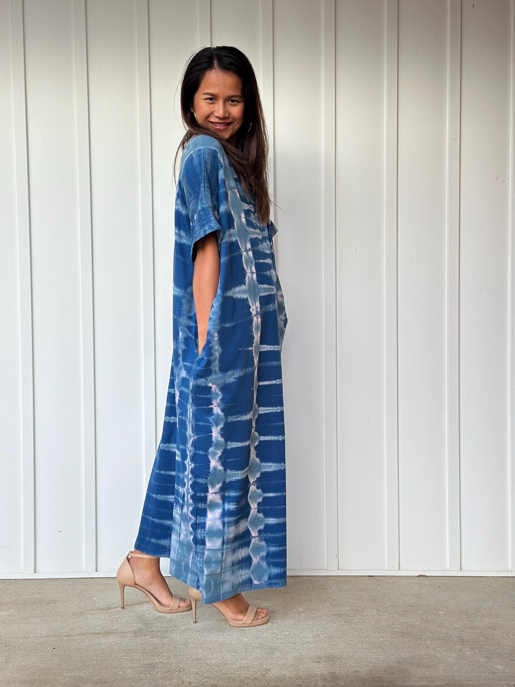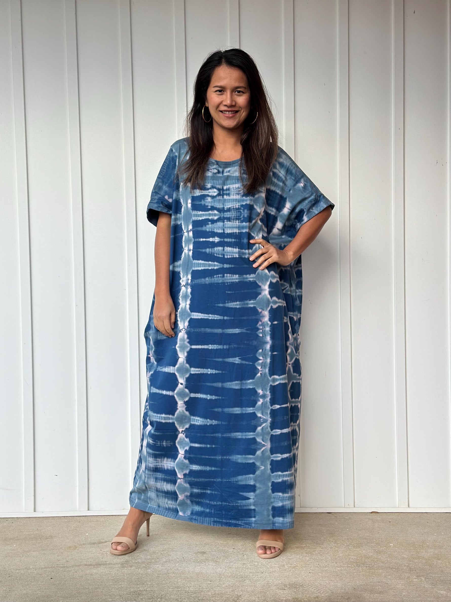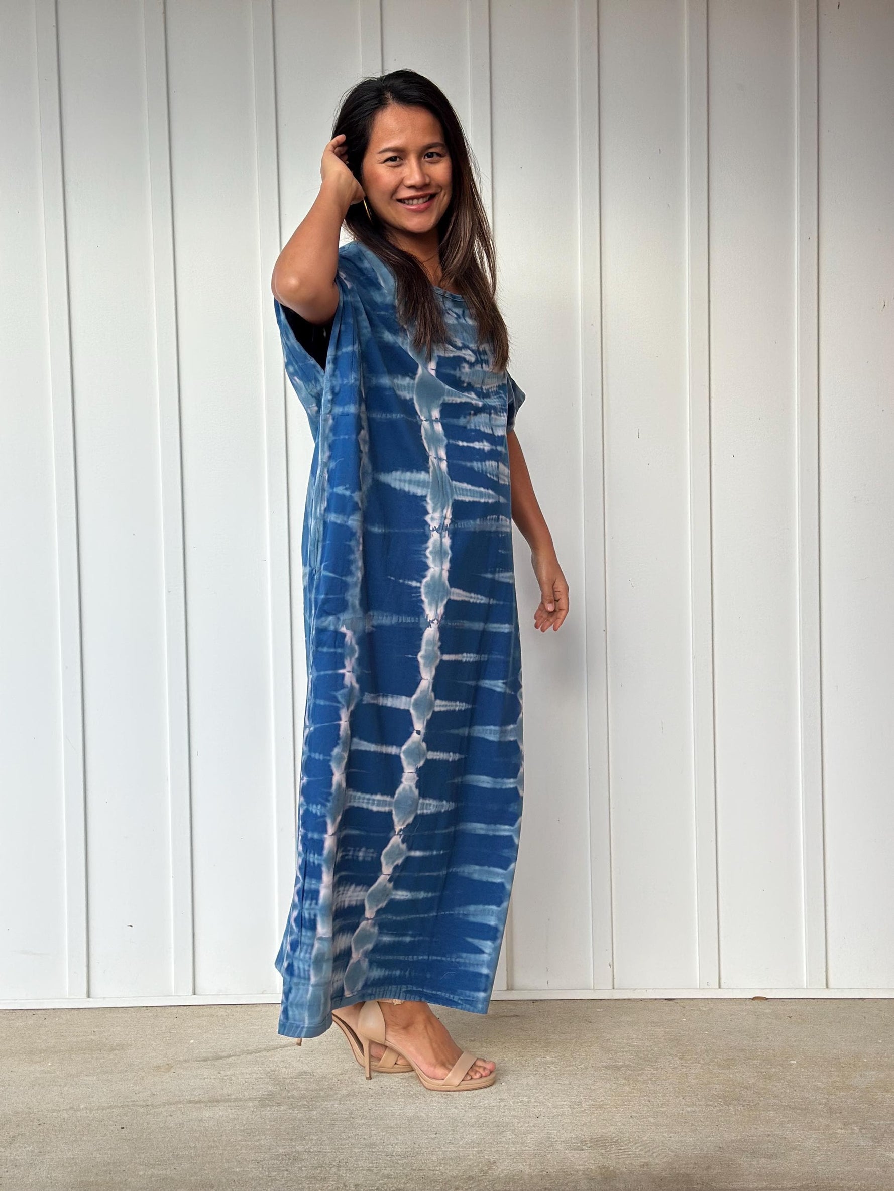 Alice Jersey Cotton Kaftan in Blue and White Tie Dye