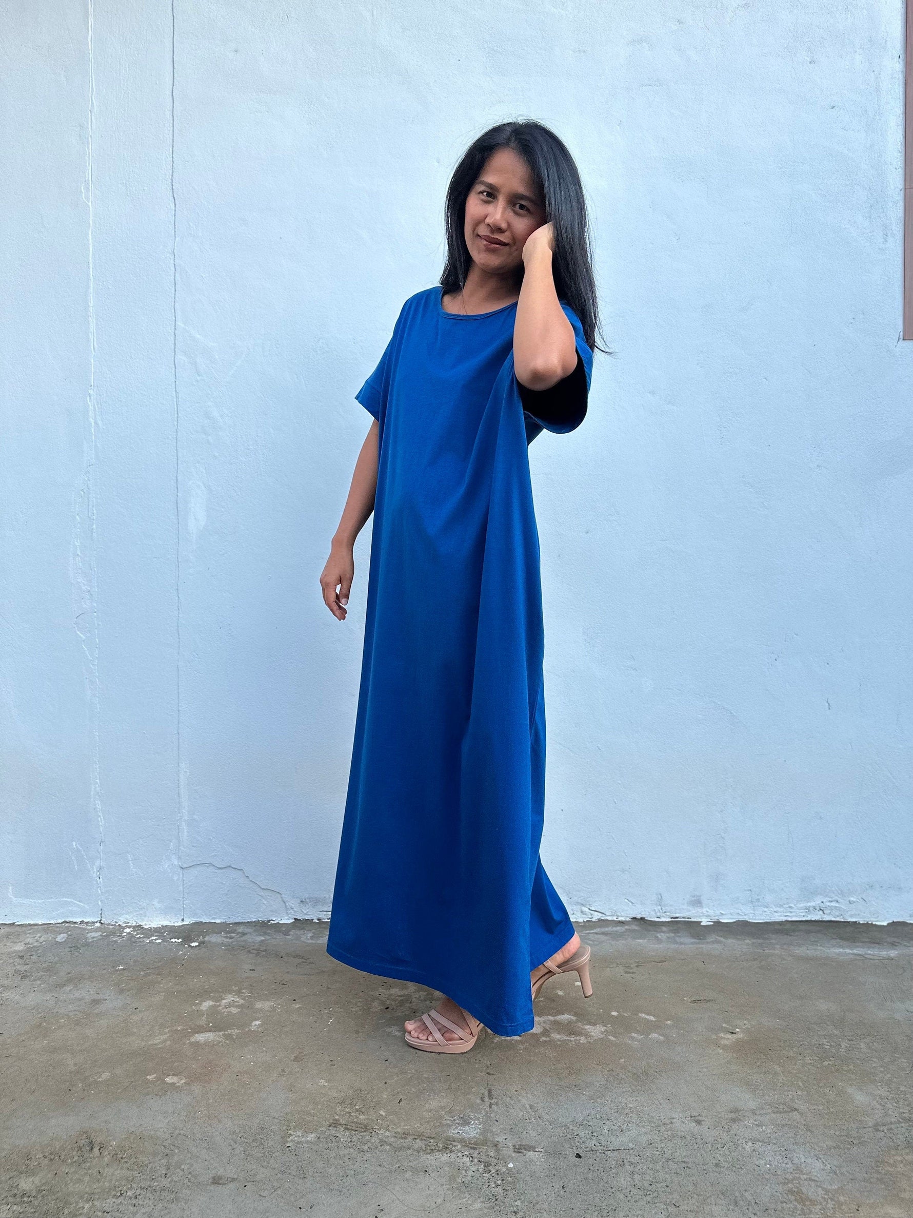 Alice Jersey Cotton Kaftan in Cornflower Blue
