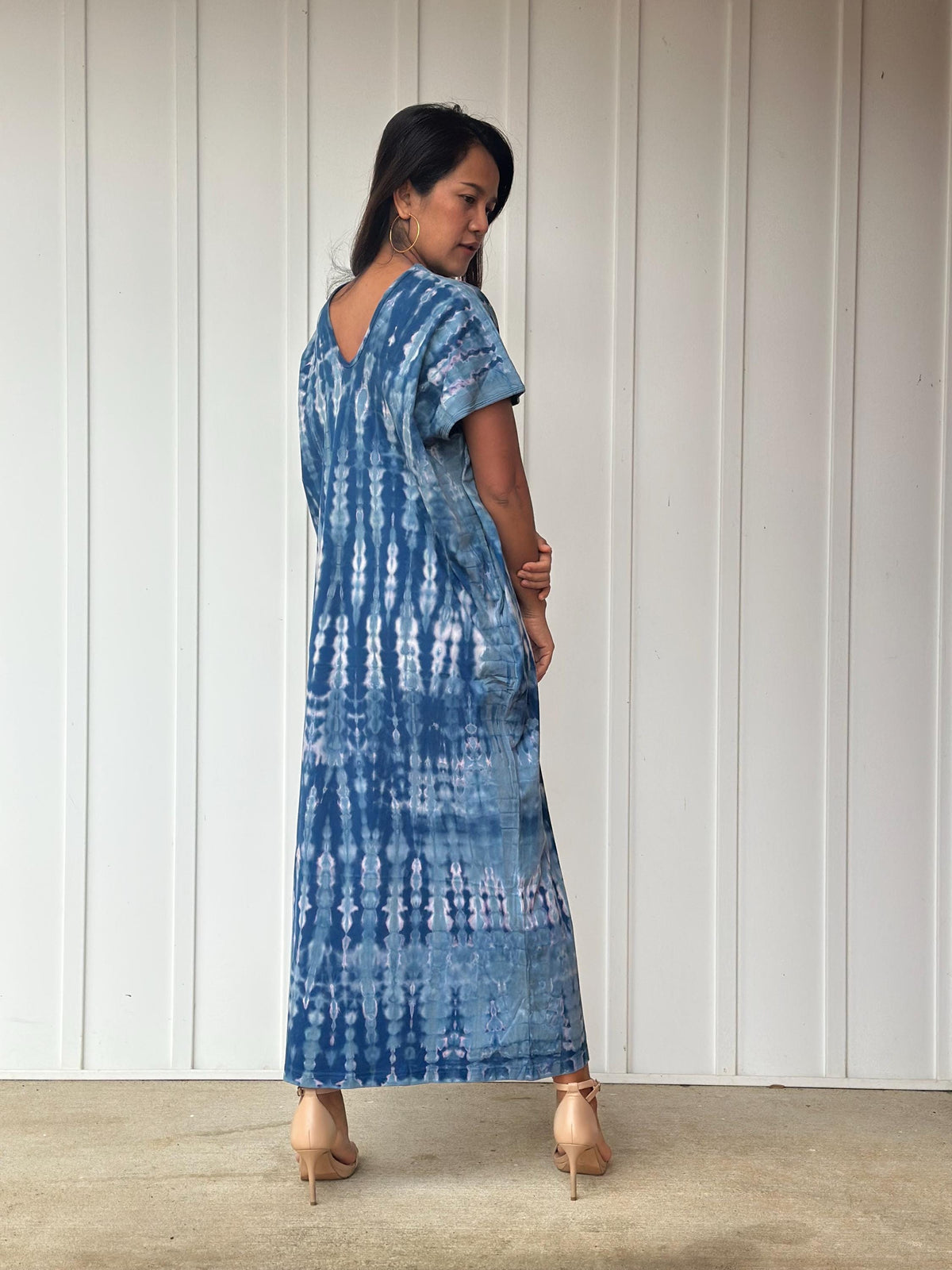 Alisa Petite Cotton Kaftan in Azure Tie Dye