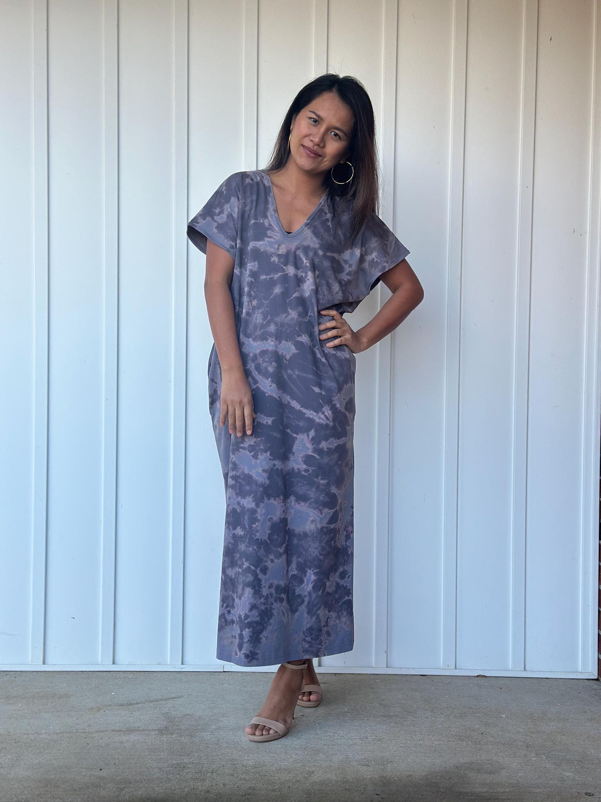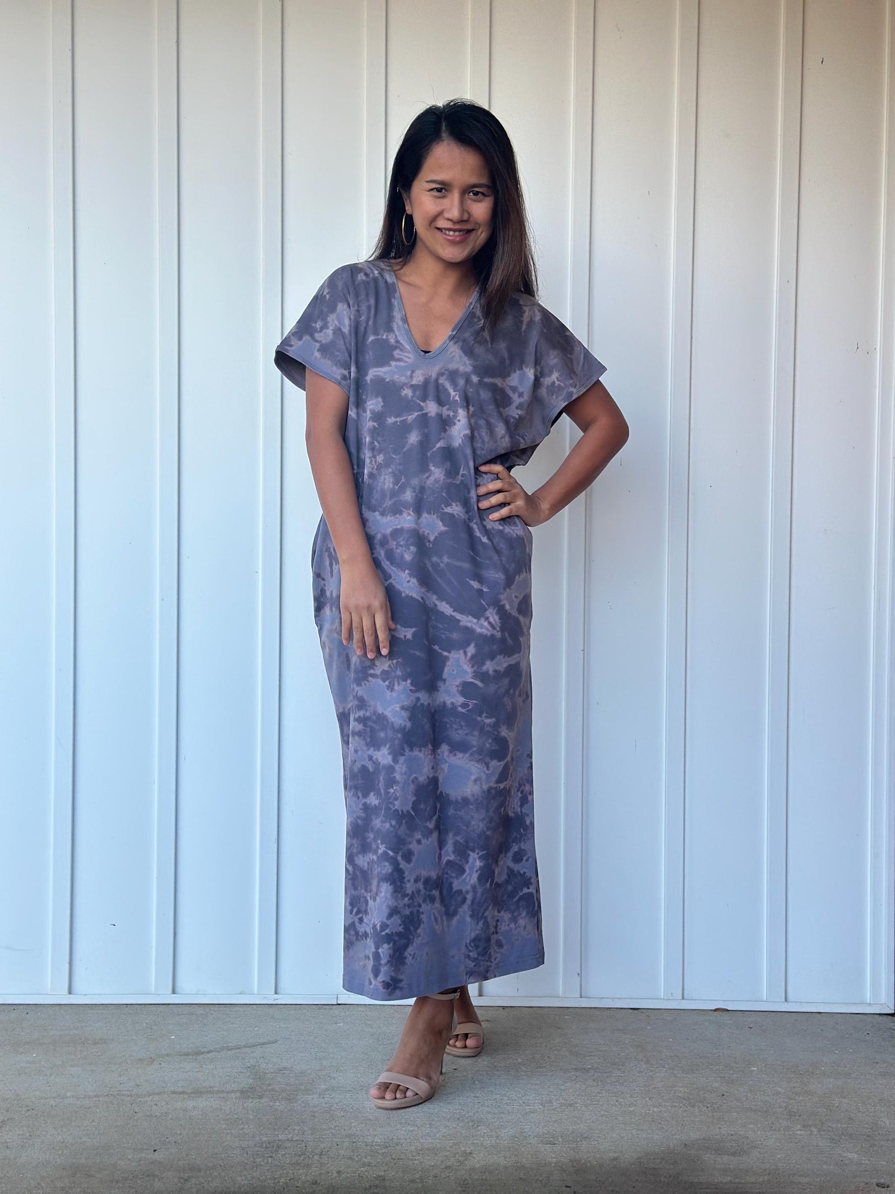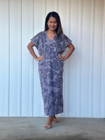 Alisa Petite Cotton Kaftan in Dark Gray Tie Dye