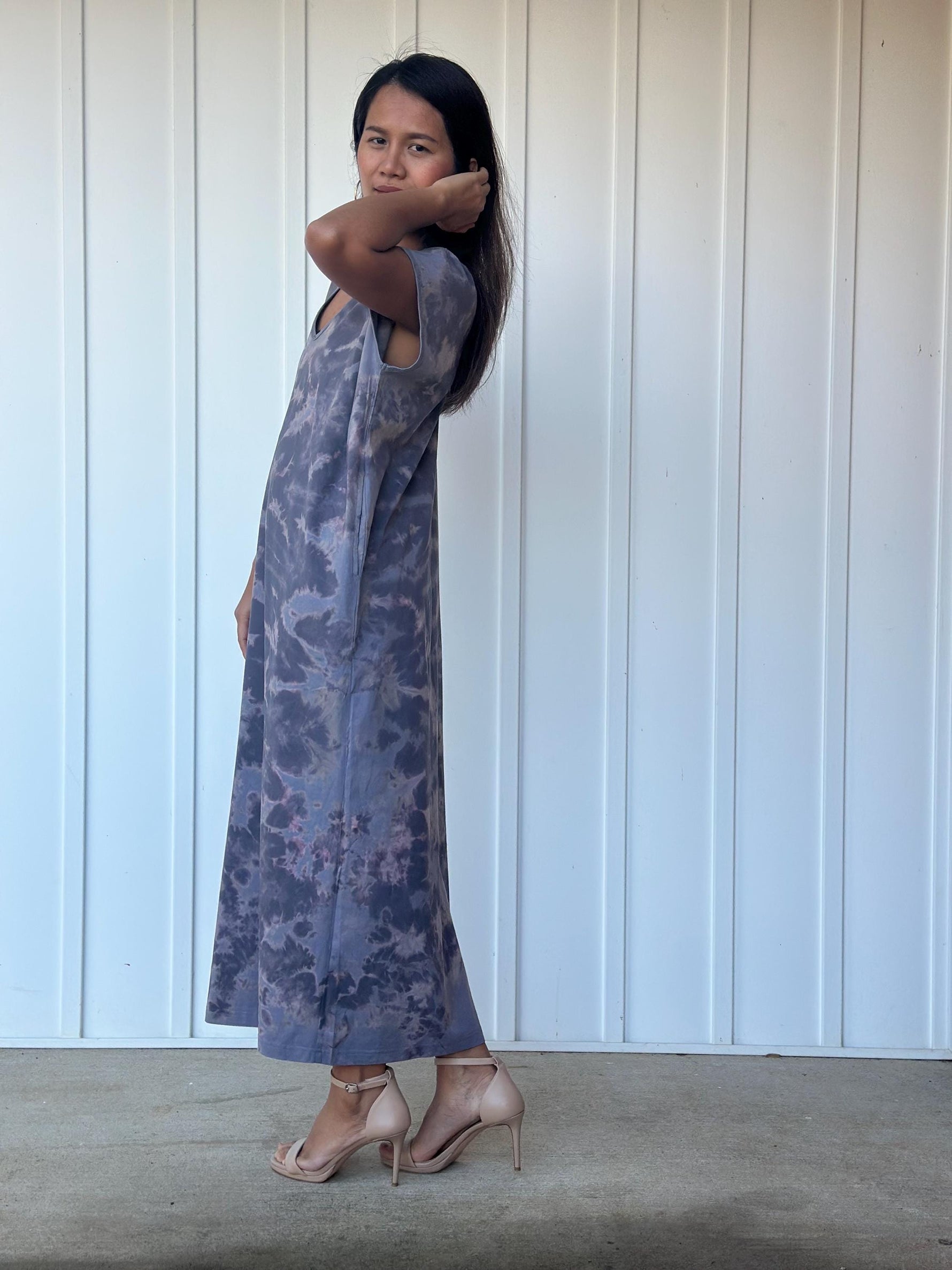 Make a statement that fits. Alisa’s petite-specific width creates a sleek line, letting the dark lavender gray tie dye pattern take center stage. The thicker jersey cotton feels soft yet substantial, and the precise neckline/hem placement keeps proportions polished. Belt it or wear it loose. Either way, the look is intentional and uniquely yours.