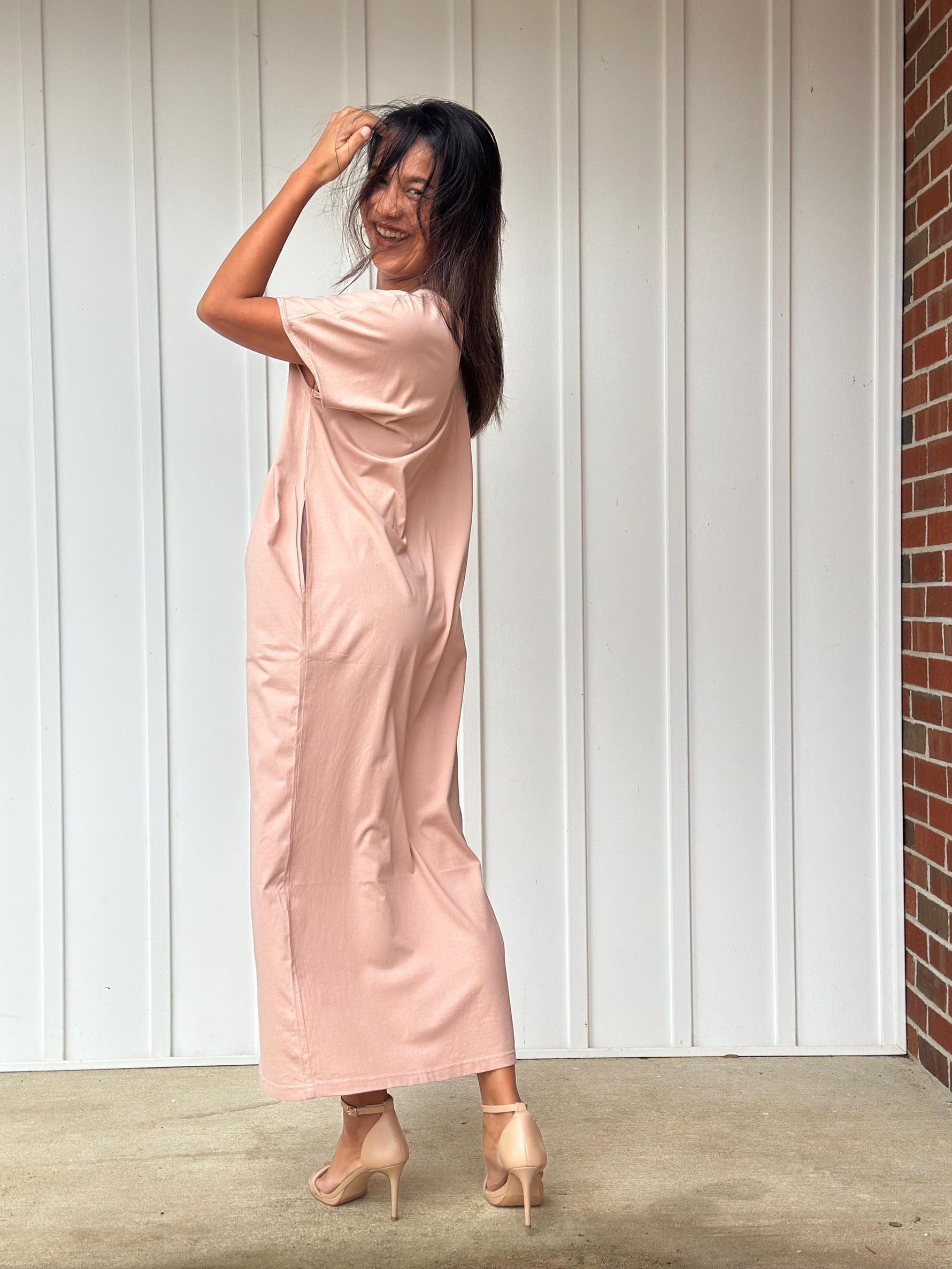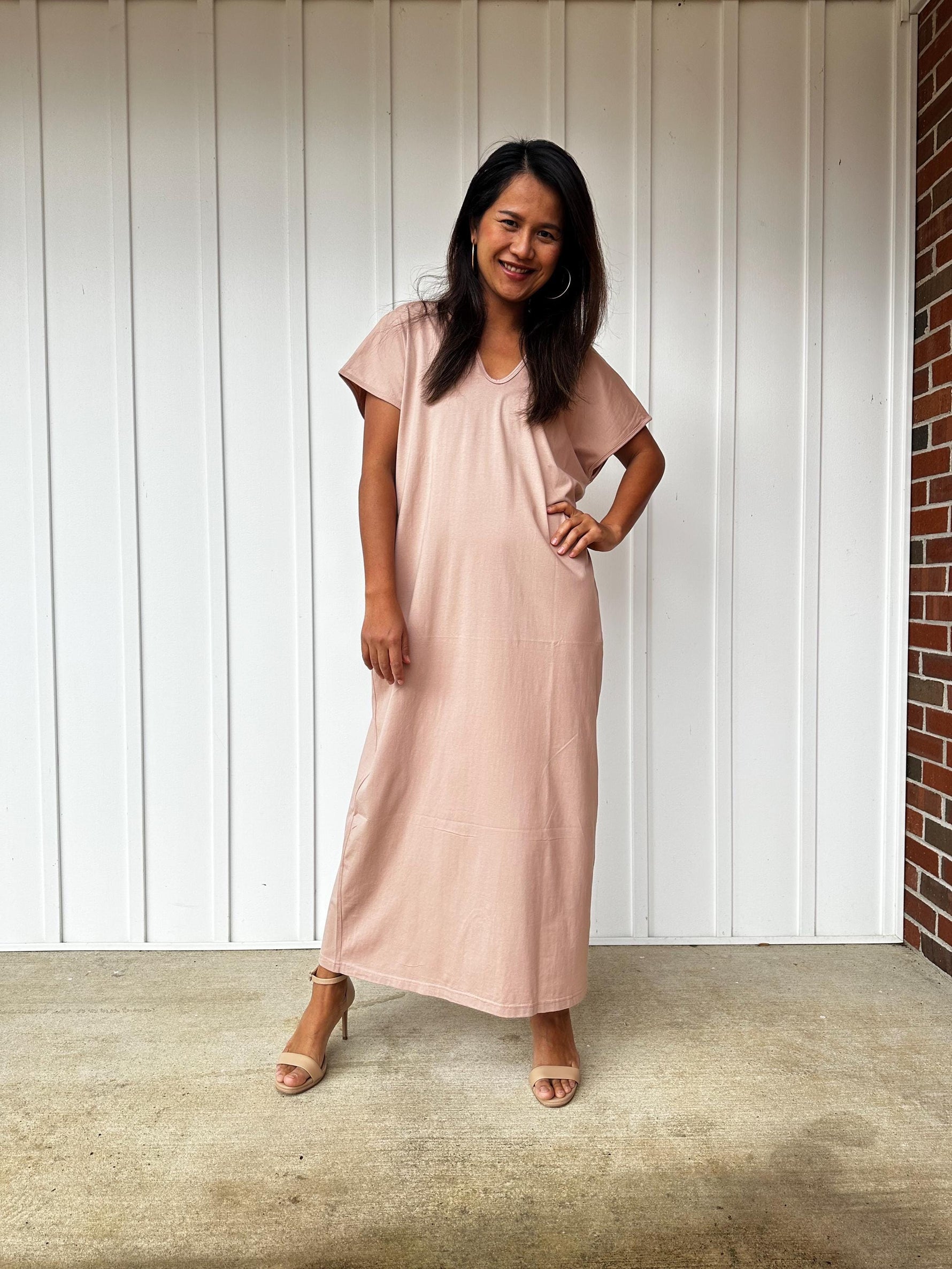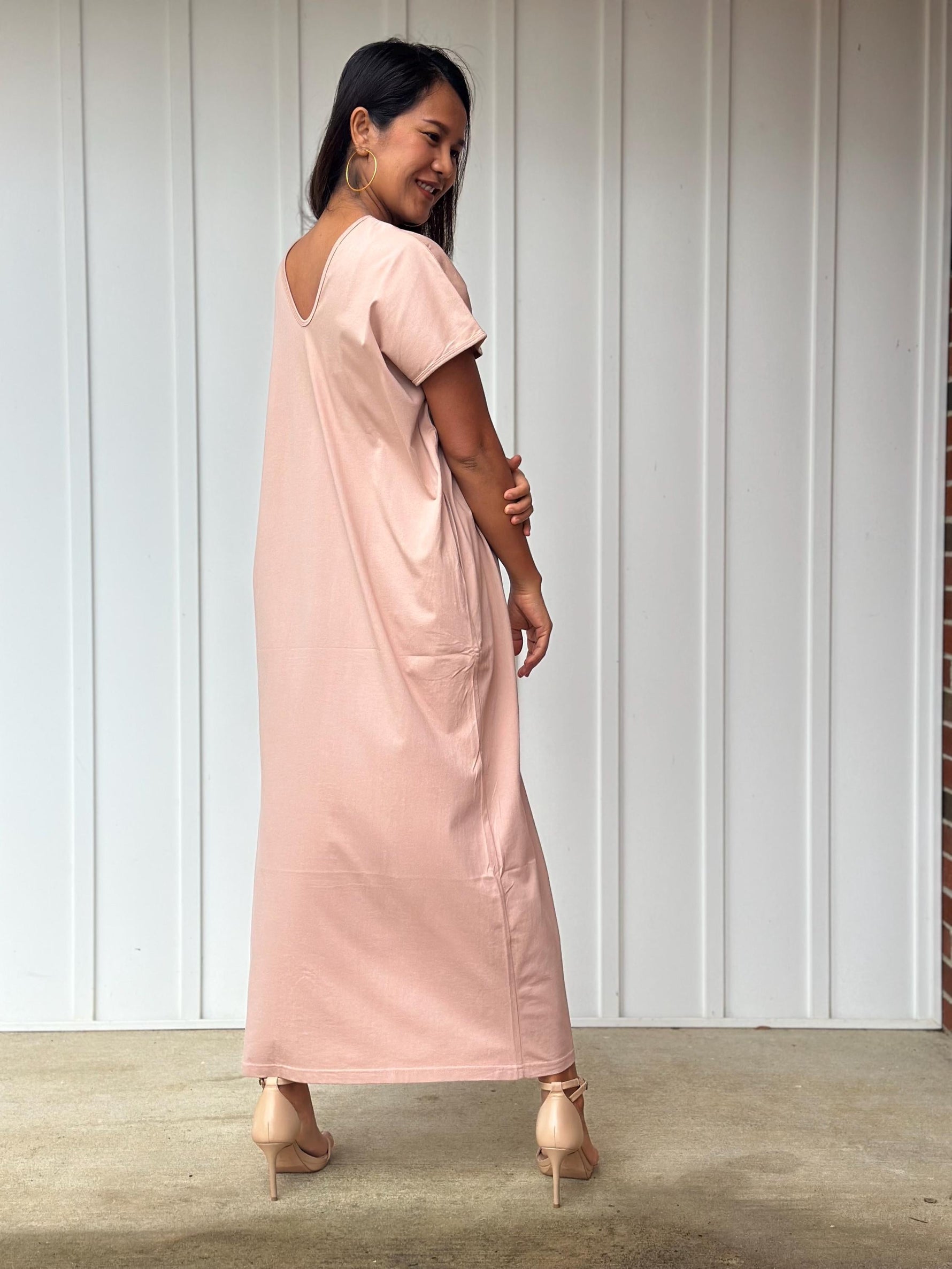 Soft yet substantial, our high-quality jersey cotton gives Alisa its smooth hand and structured flow. The petite-minded circumference fights closer to the body balancing ease with polish, while the V neck frames your shoulders. In peach, it’s a capsule staple. Layer over a slip, add sandals, or belt for shape. Comfort, proportion, and versatility in one.