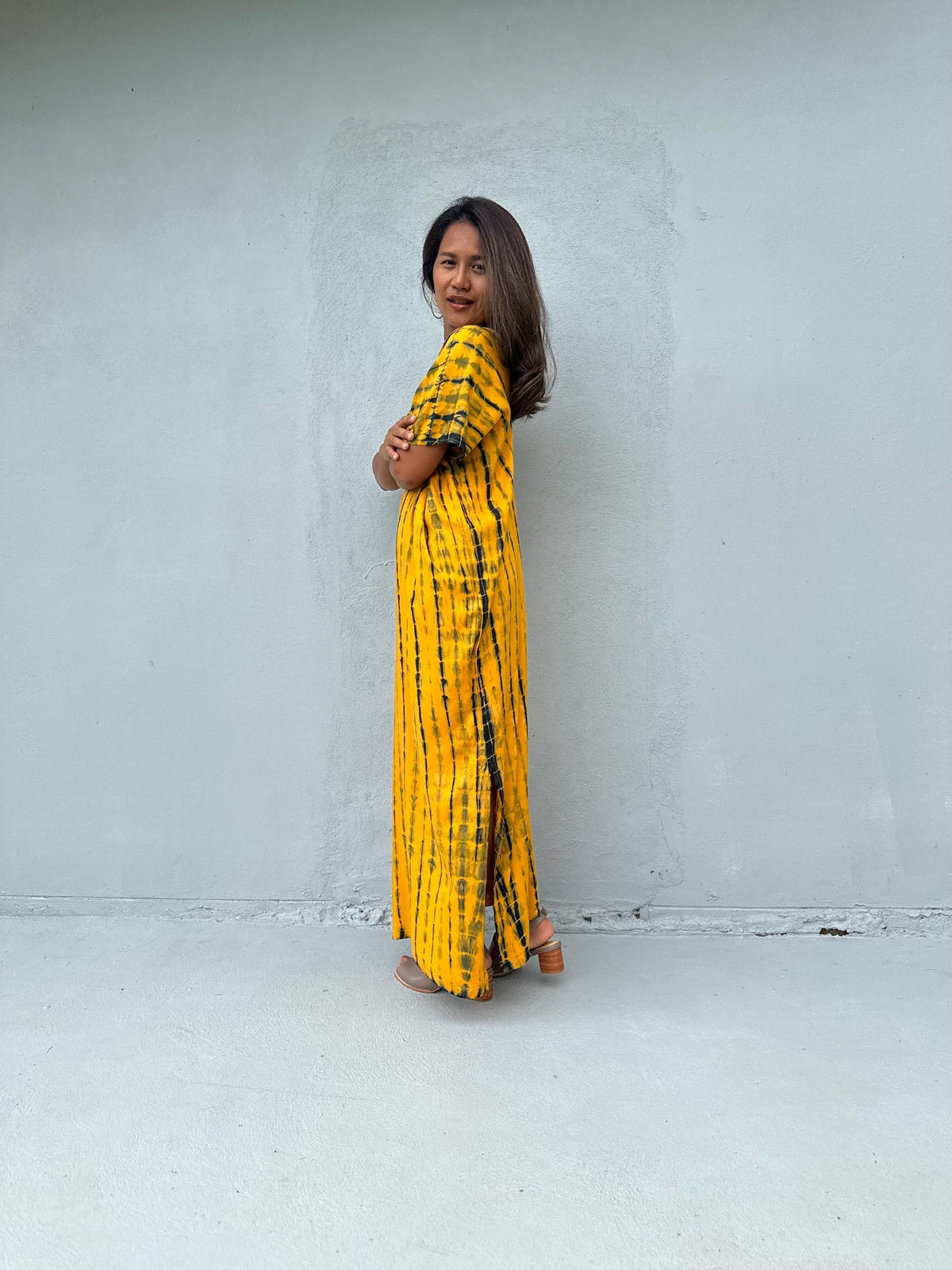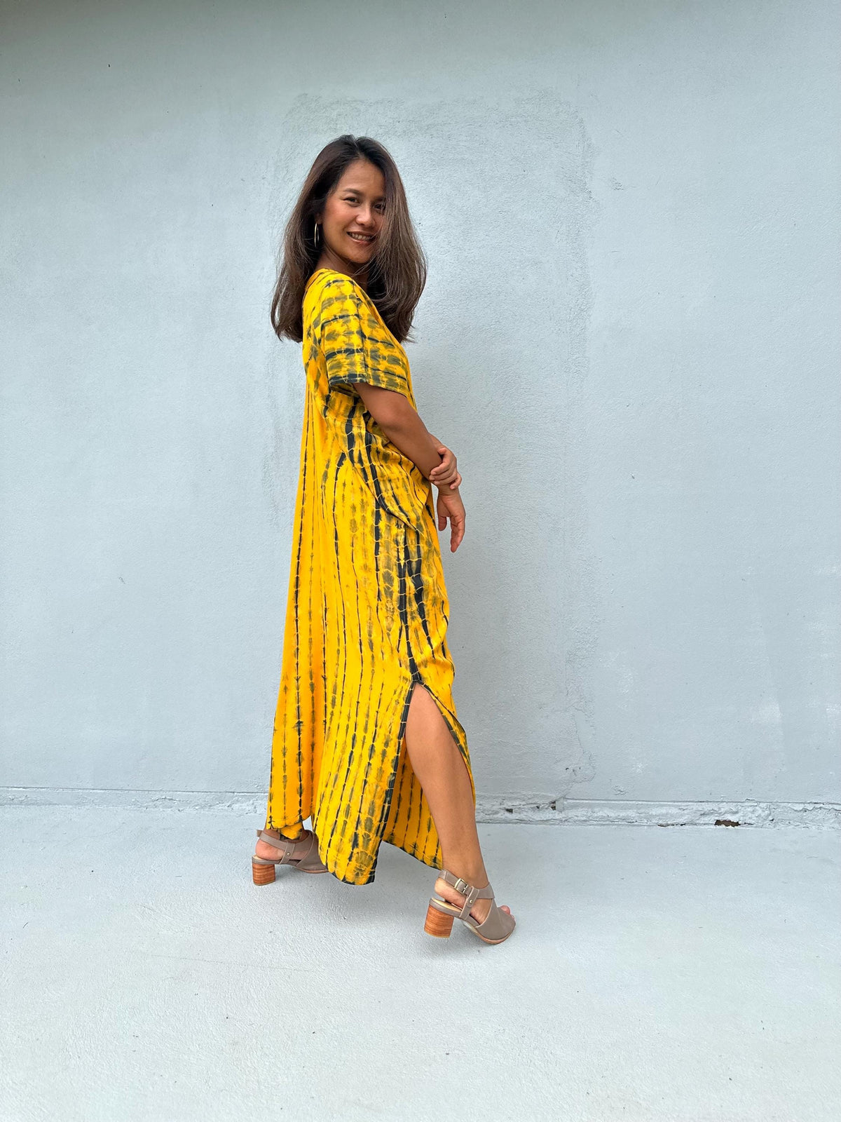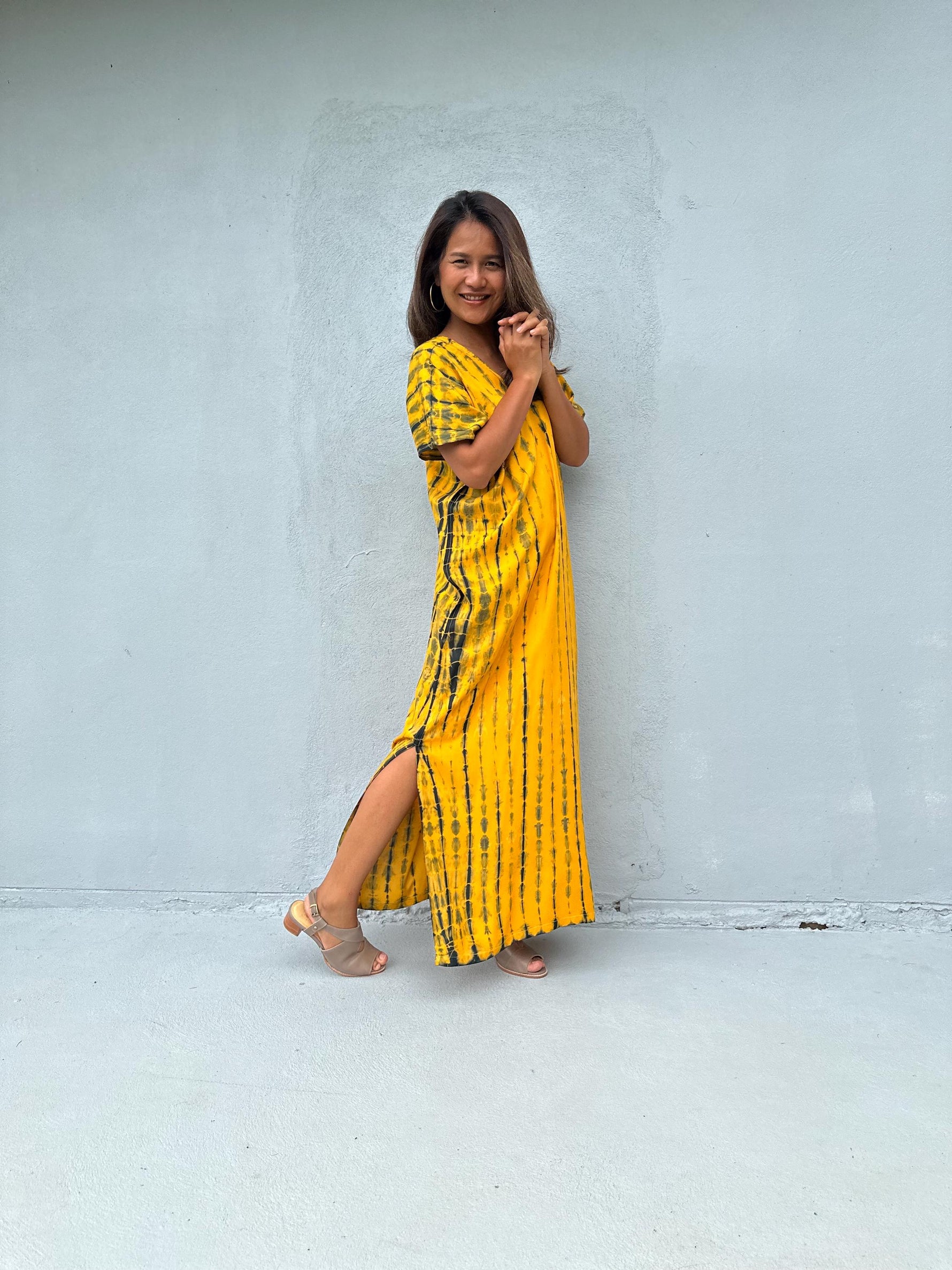 Every kaftan is sewn and dyed by artisans in Thailand – no two are ever alike.