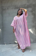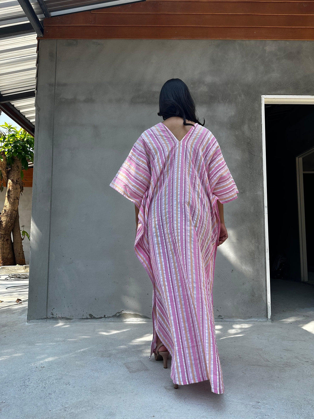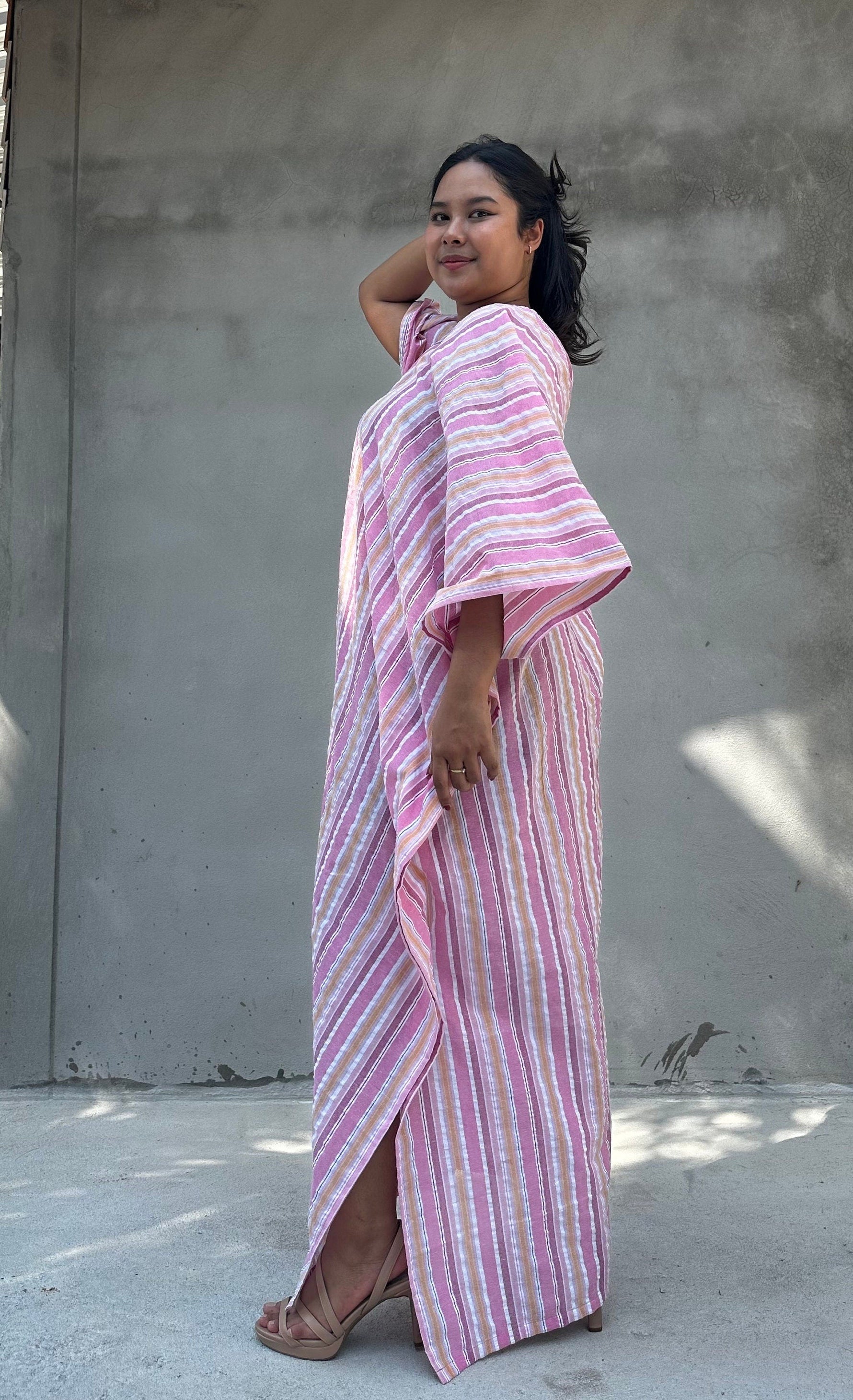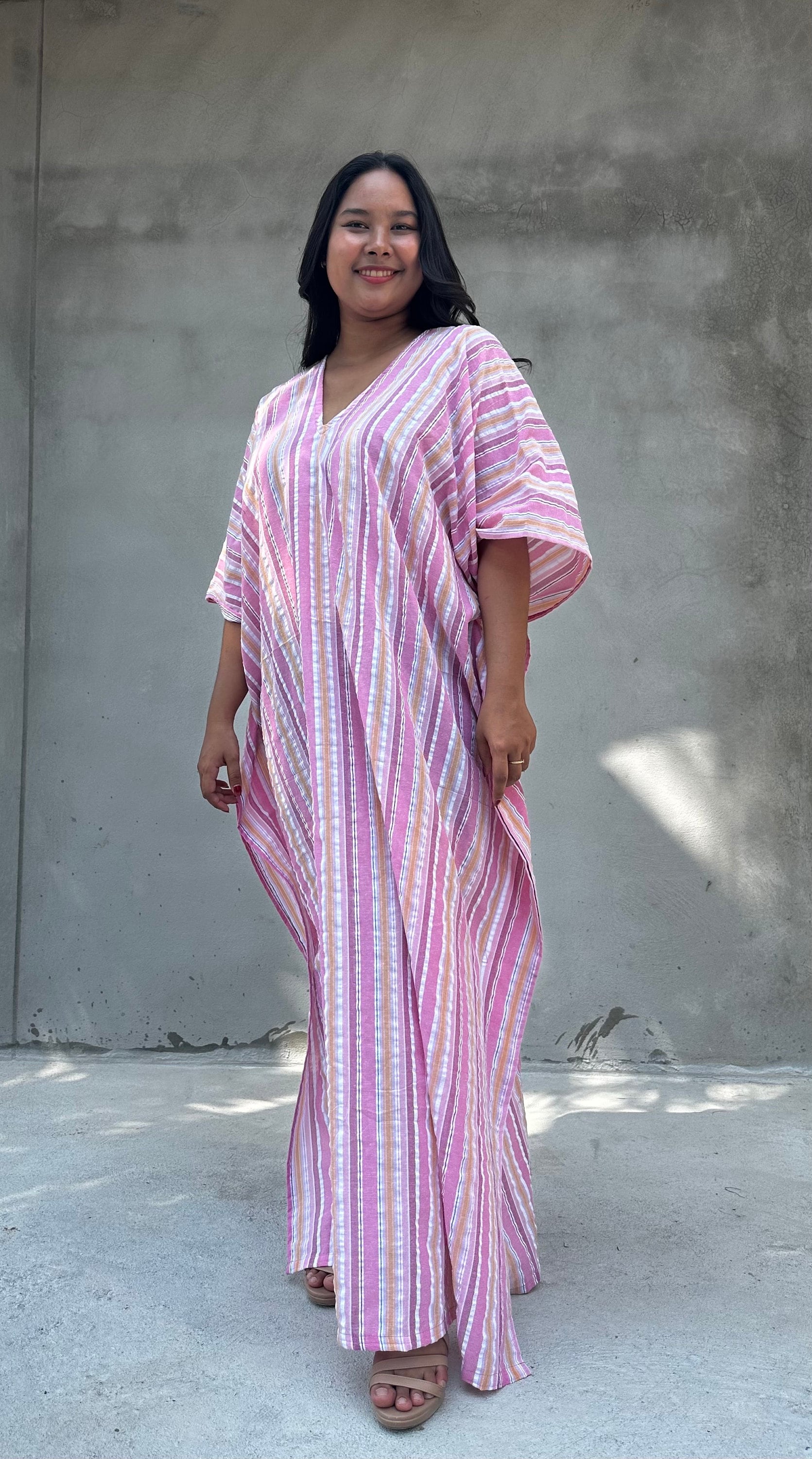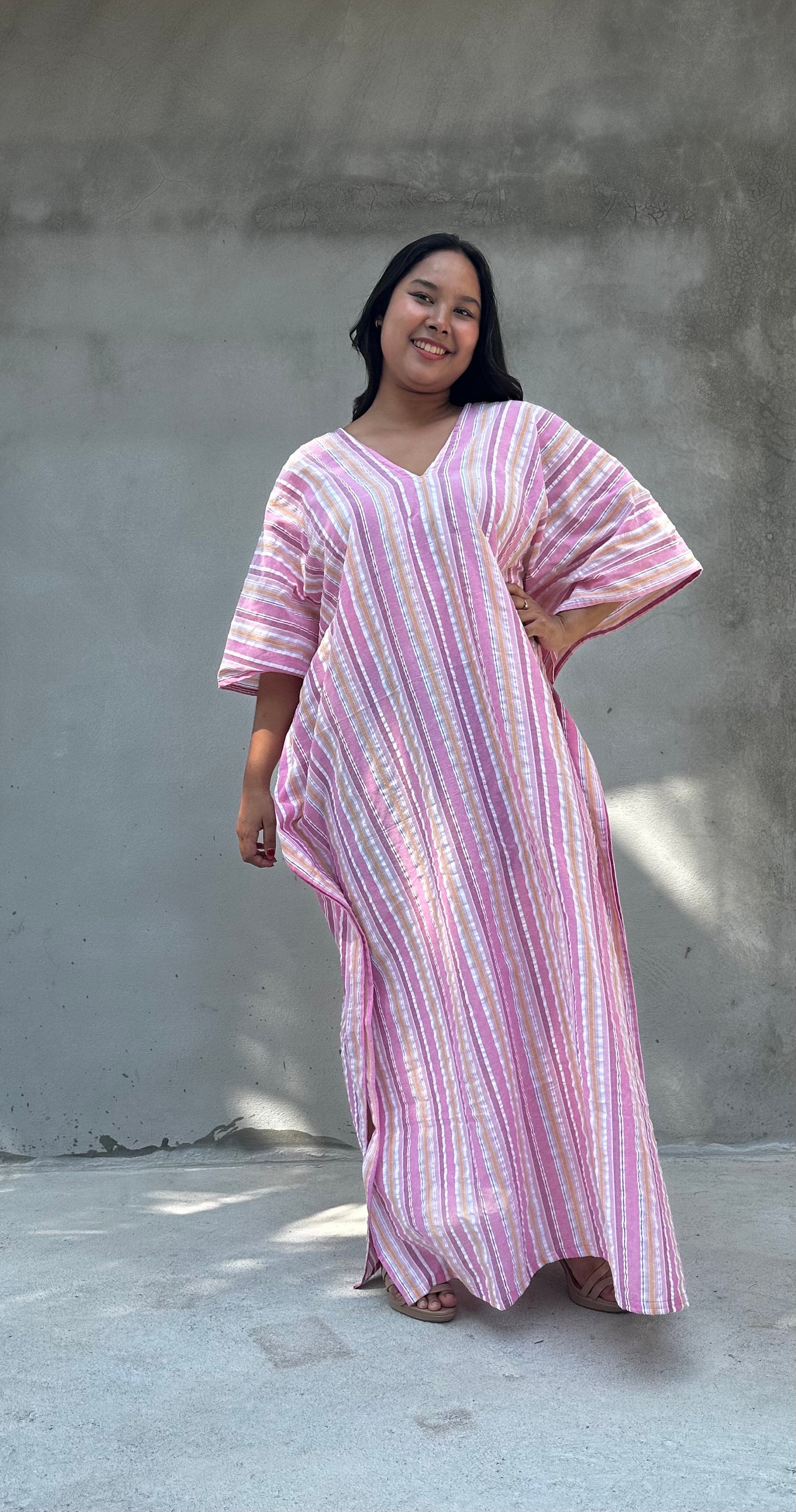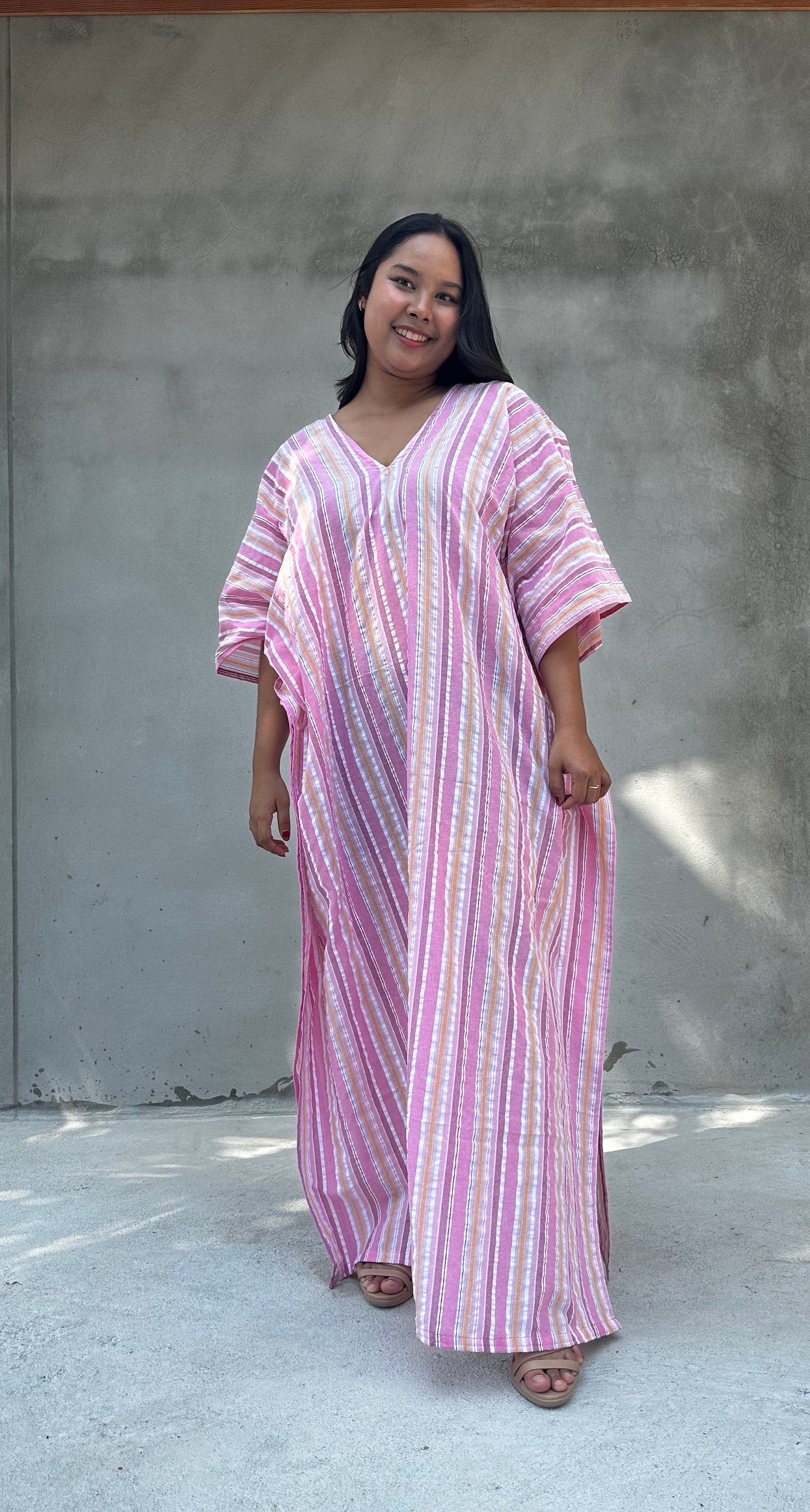 Ella Plus Size Cotton Kaftan with Pink Stripes