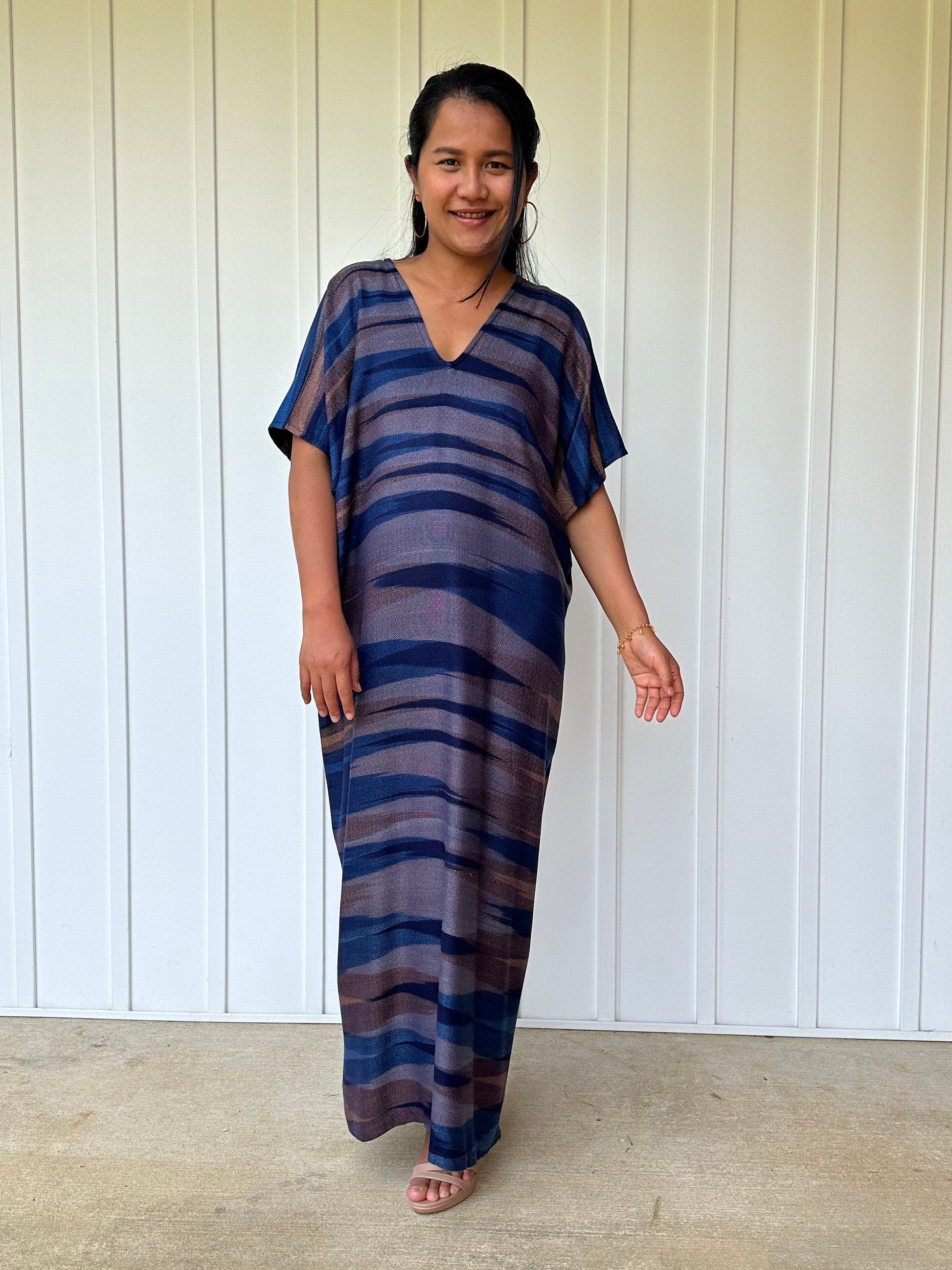 This one-of-a-kind kaftan is handwoven using traditional Ikat techniques – meaning the pattern is hand woven, not printed and the thread is hand dyed. Each piece is crafted by skilled artisans, making every kaftan completely unique. Soft, breathable, and effortlessly elegant, it’s a statement of quality and craftsmanship you can feel.